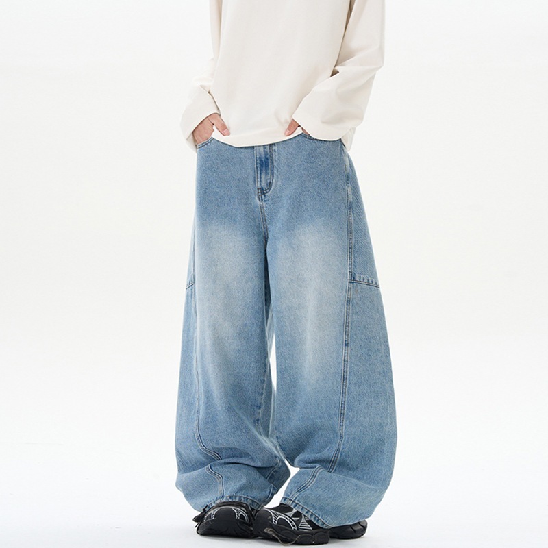 ハイストリートアメリカン レトロ バギー ディコンストラクション ワイド カーブジーンズ 男女兼用 ハイストリート カップル ブランド パンツ