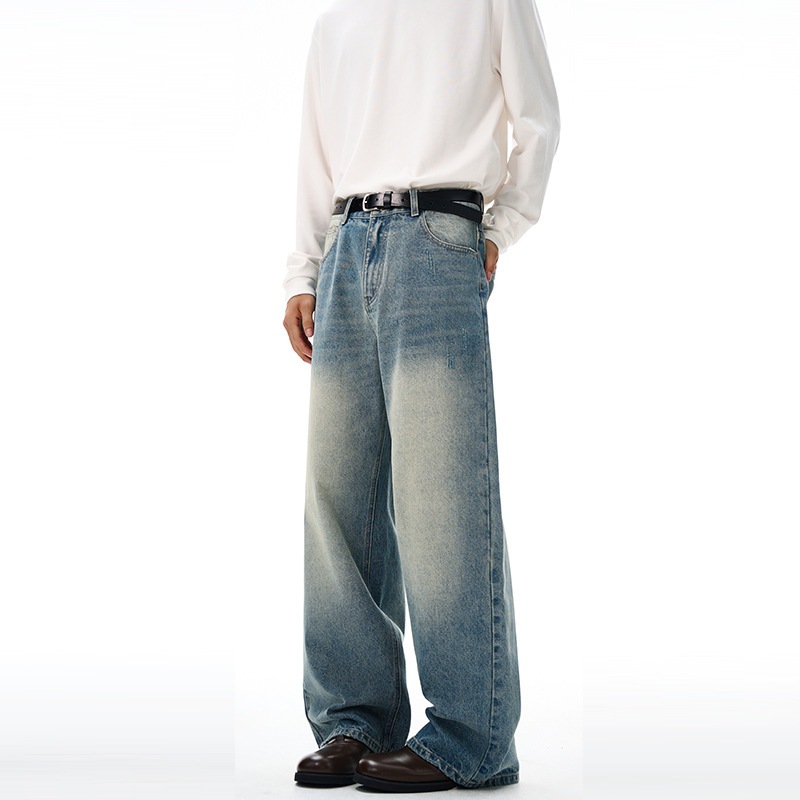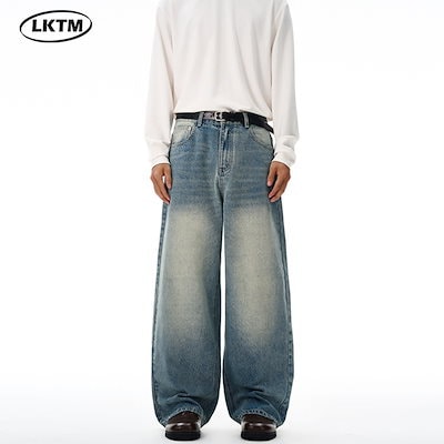 アメリカン ウォッシュ ドレープ感 ストレート ジーンズ 男女兼用 ゆったり cleanfit カジュアル ロングパンツ