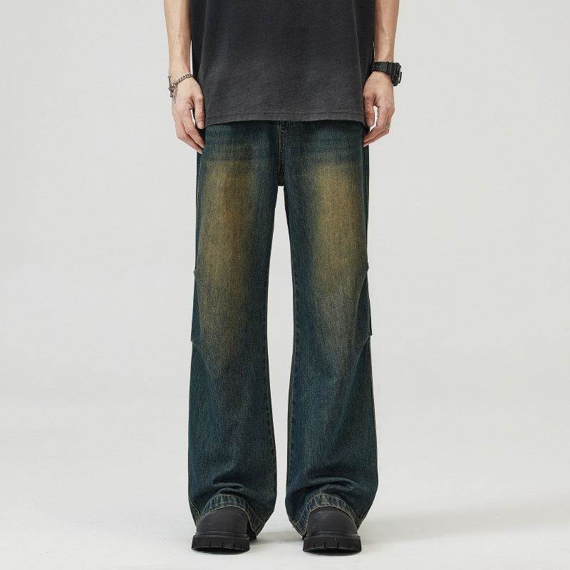 ハイストリートアメリカン ハイストリート フレア ジーンズ 男女兼用 レトロ バイブ ウォッシュ タック デザイン性 落下傘パンツ