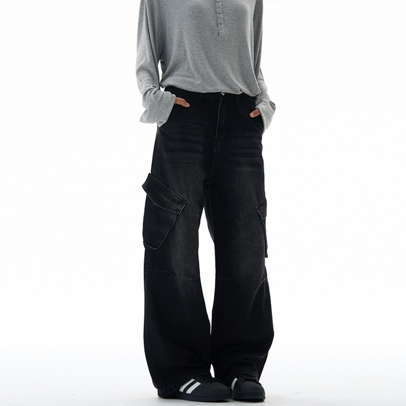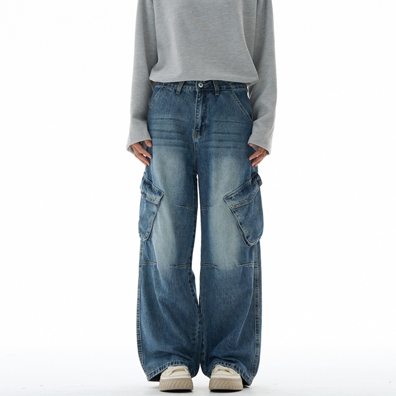 アメリカン ストリート ビッグポケット カーゴ ジーンズ 男女兼用 バイブ ブランド カジュアル ストレートパンツ