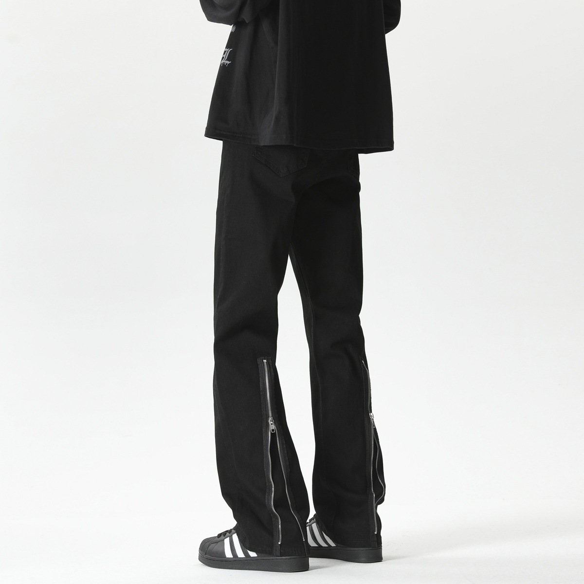 アメリカン ストリート ブラック ジッパー ストレッチ ジーンズ メンズ バイブ ブランド フレアパンツ
