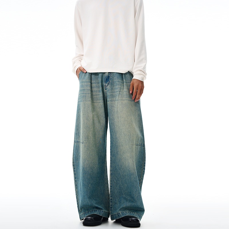 アメリカン レトロ ノスタルジック ブルー タック カーブジーンズ 男女兼用 cleanfit リラックス 引きずるパンツ