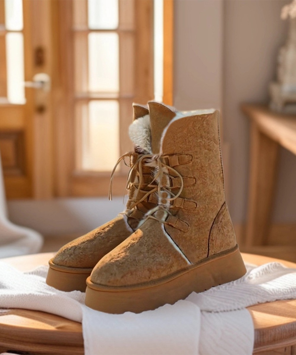 ボアムートンブーツ裏起毛 厚底ブーツ冬靴