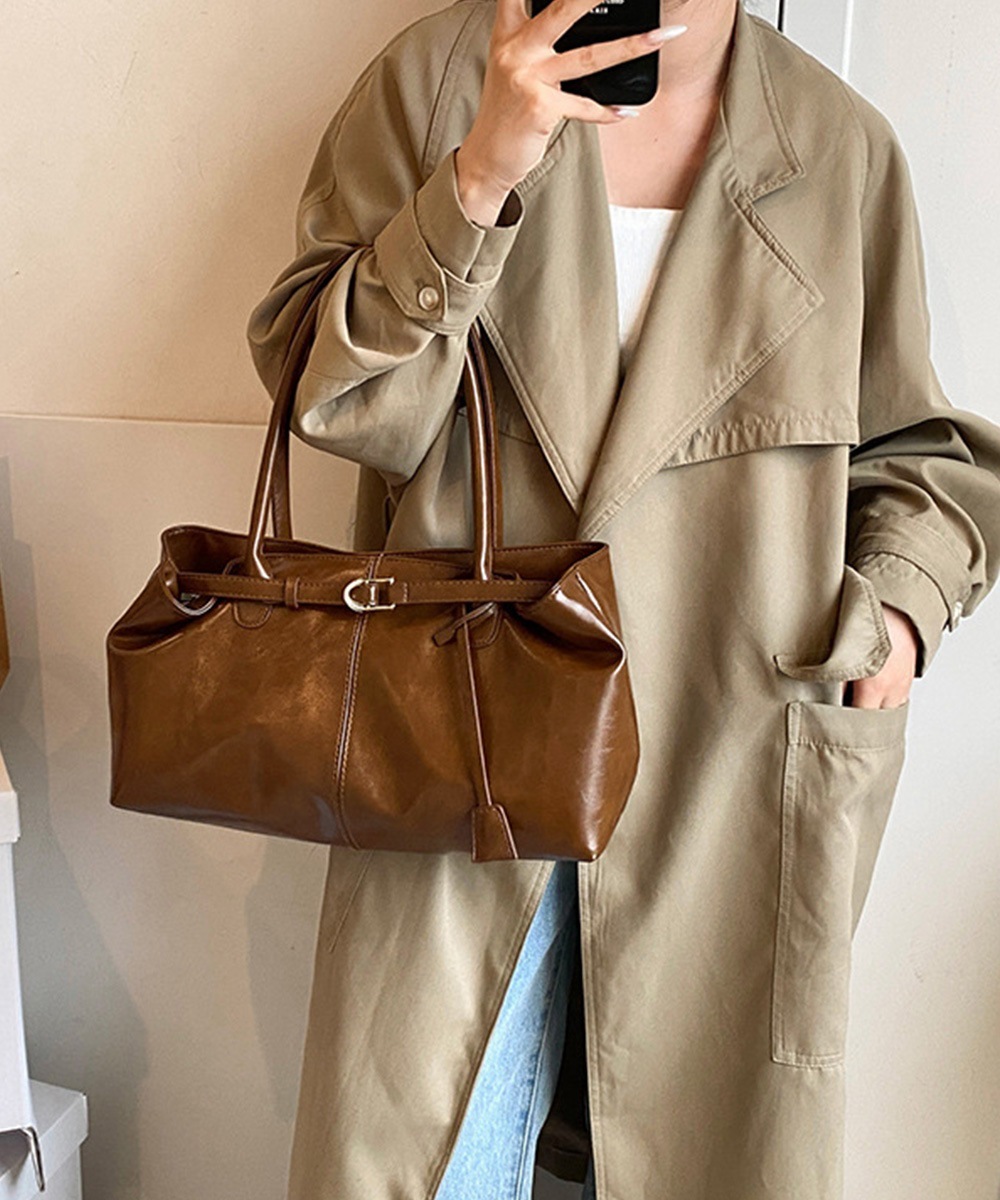 オイルワックス風合皮トートバッグ肩掛け鞄