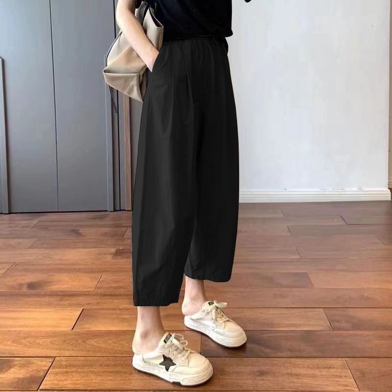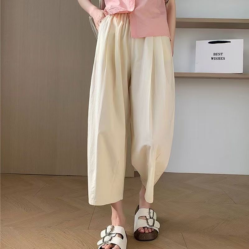 イージーワイドパンツ ハイウエストワイドパンツ レディース ゆったり9分パンツ 用 薄手 通気性 ひんやり 涼しい カジュアル パンツ 無地 ポケット 大きいサイズ