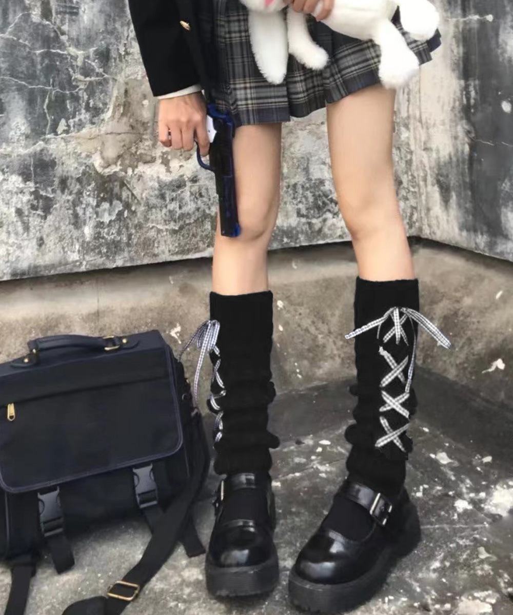 レースアップニットレッグウォーマー暖かい