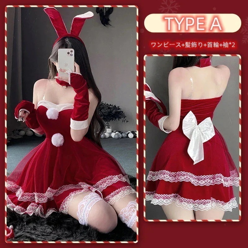 サンタコスプレ サンタコスプレクリスマス服セット レディース コスチュームクリスマスうさ耳ワンピース クリスマスコスプレ 全ネット最安値に挑戦【】【7点セット】