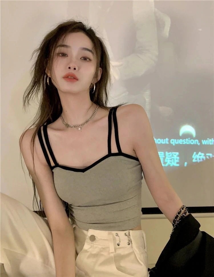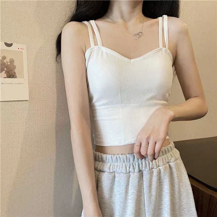 Vネックブラトップ アウター ストラップタンクトップ パッド付き カジュアル 女性用
