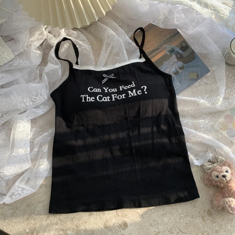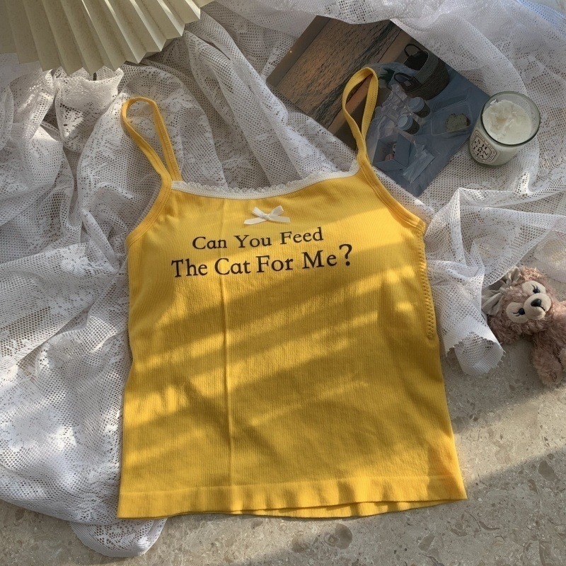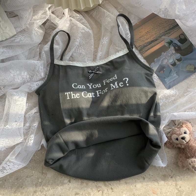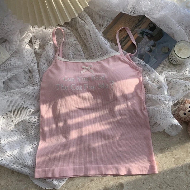 キャミソール インナー タンクトップ トップス レディース アウター 胸パッド付き プリントリボンキャミソール