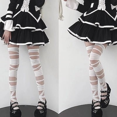 ニーハイ Y2K サブカルチャー 靴下 ロリータ 三足セット ロングチューブ ストッキング クロスオーバー ロリータ JKストッキング ストラッピー