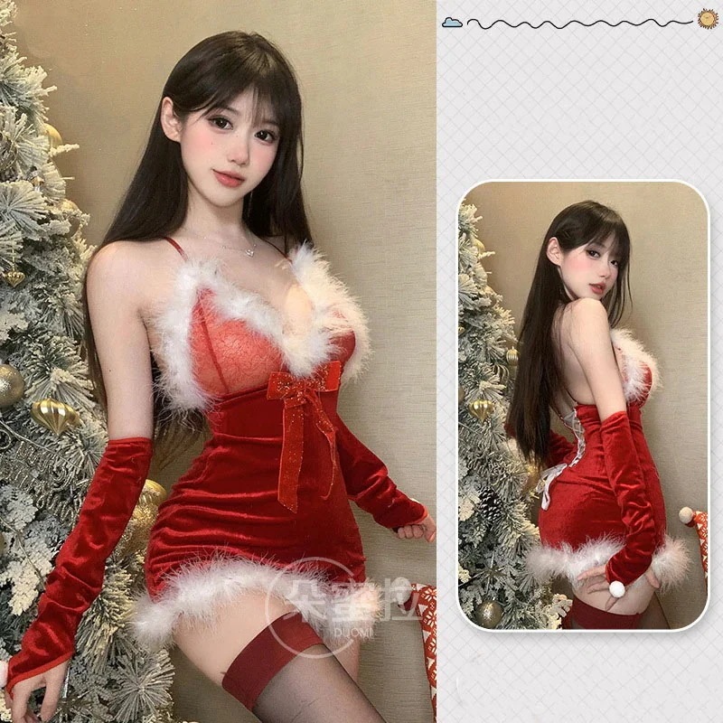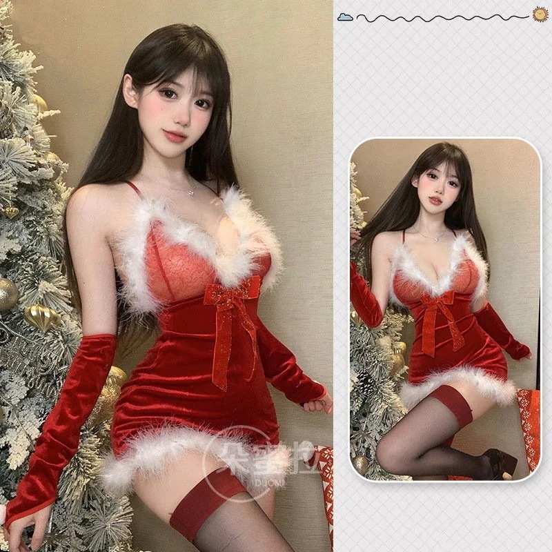 ベッド 小さな胸 クリスマスコスチューム 韓国ファッション セクシー 新年 サンタコスプレ ロールプレイ 情熱 ランジェリー ノー・ストリップ