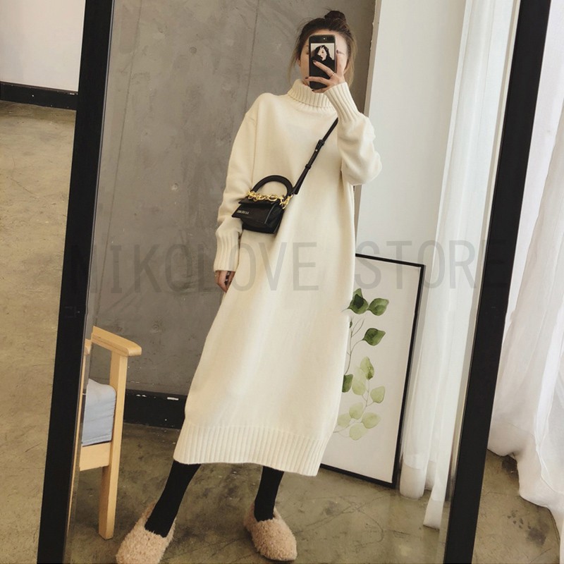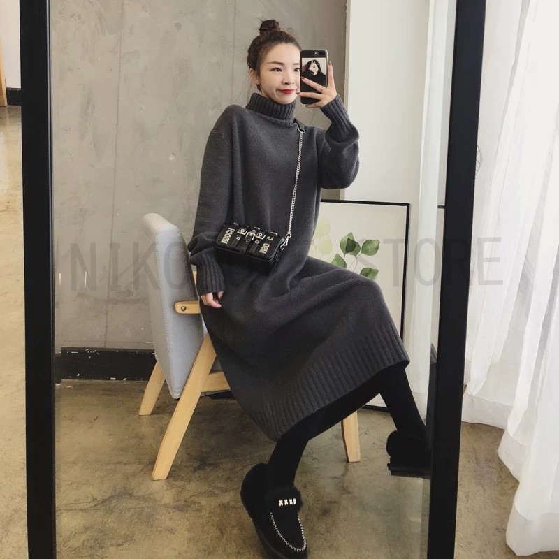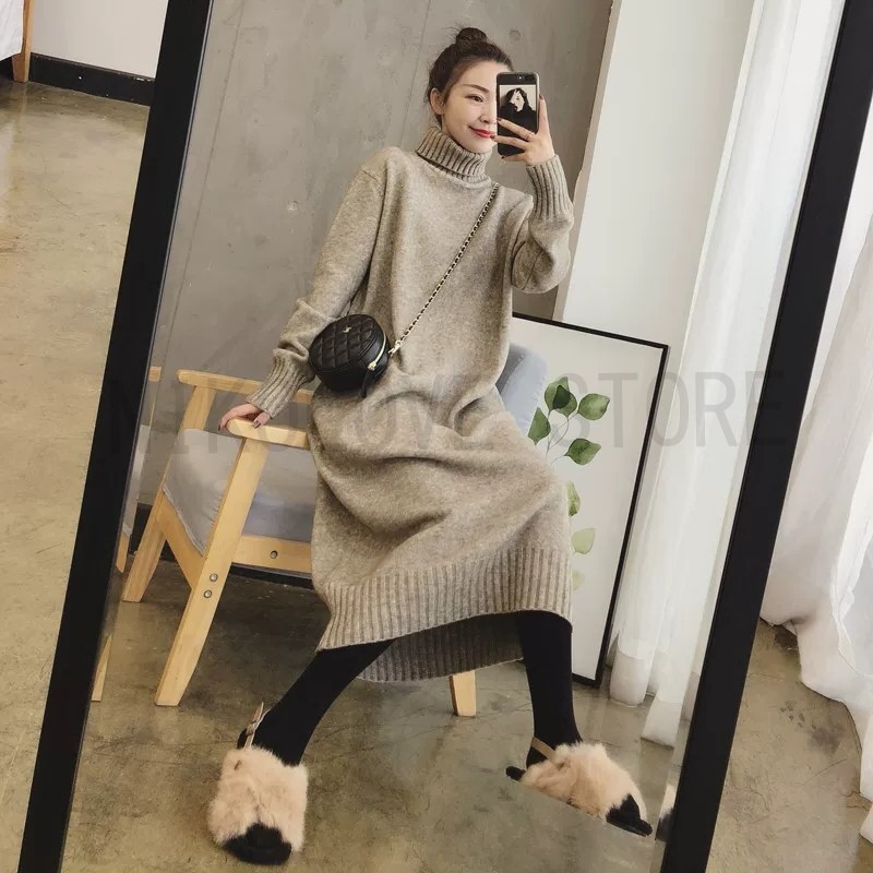 爆買 【一部即納】【期間限定】セール ワンピース タートルニットワンピース フレア ロング マキシ丈 長袖 無地 送料無料
