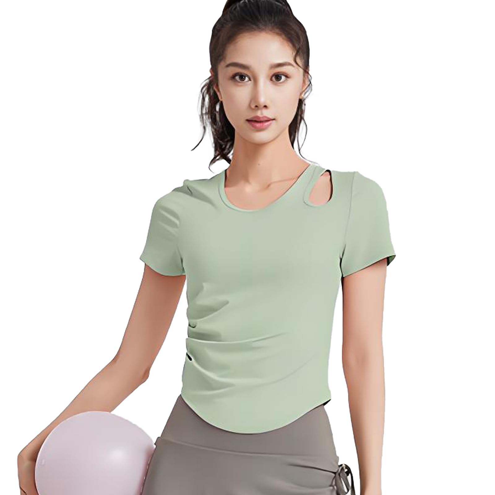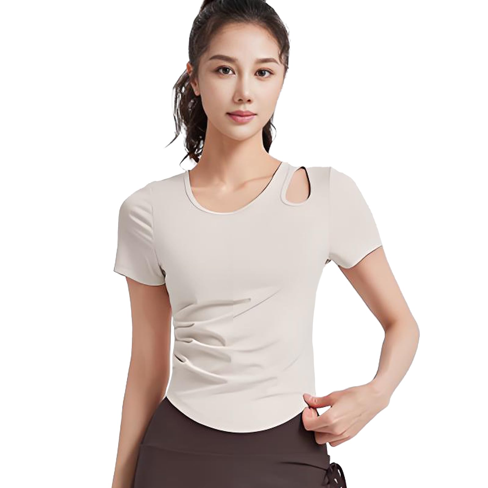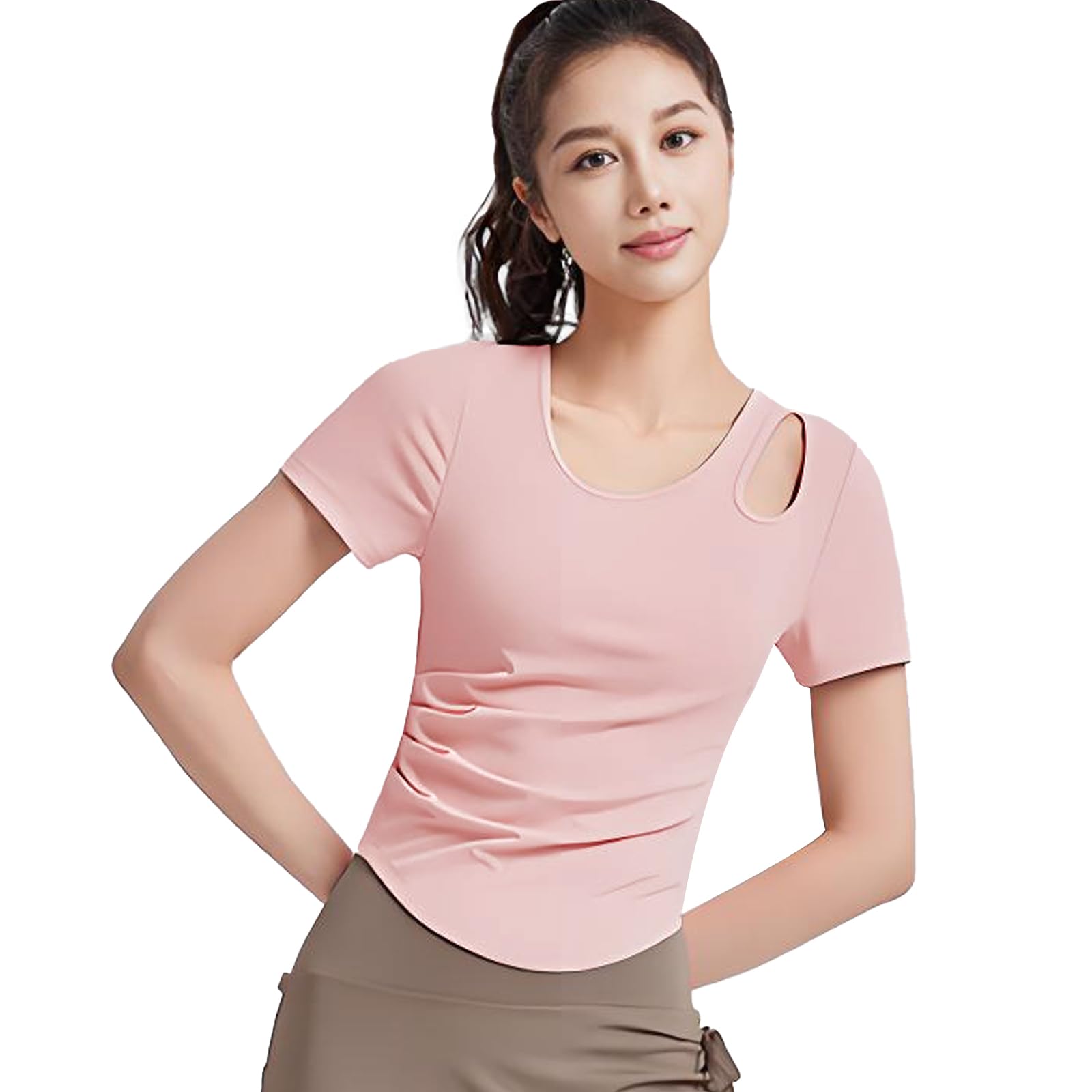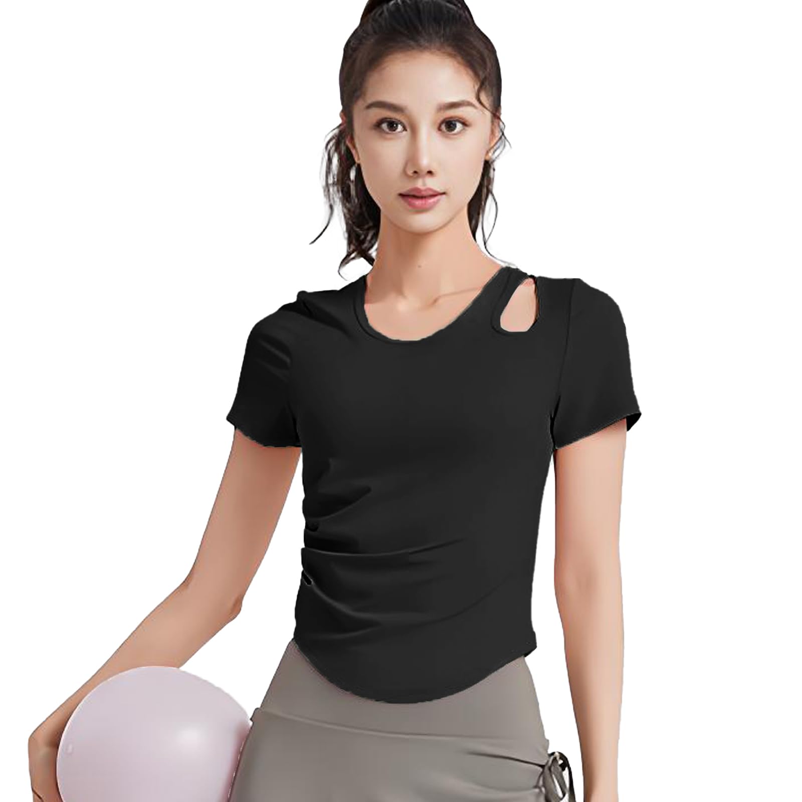 ヨガウェア 半袖 tシャツ カップ付き トップス スリムフィット レディース アシンメトリーカッティング 吸汗速乾 ショート丈 ストレッチ バレエ テニス フィットネス 運動用