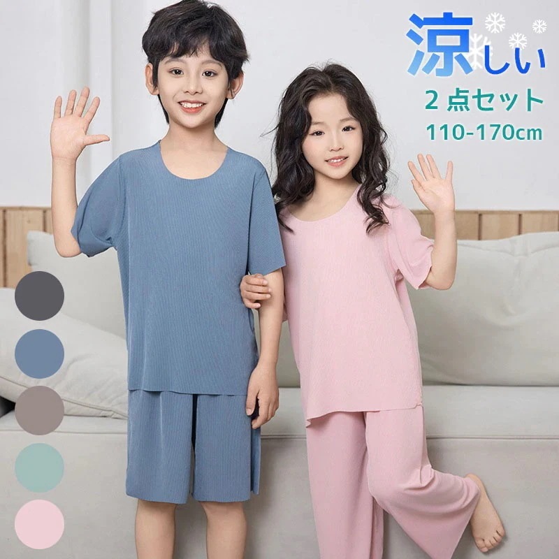 お揃い 部屋着 涼しい 夏用 お昼寝 ルームウエア 子供 ジュニア 通気性 薄手 短パン 長ズボン 半袖 アイスシルク 男子 女子 ルームウェア 涼しい 上下セット パジャマ キッズ 冷感