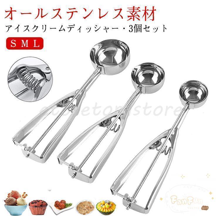 アイスクリームディッシャー 3個セット S M L ステンレス アイスクリームスプーン アイススクープ 業務用 飲食店 スプーン 小さい 料理用 キッ