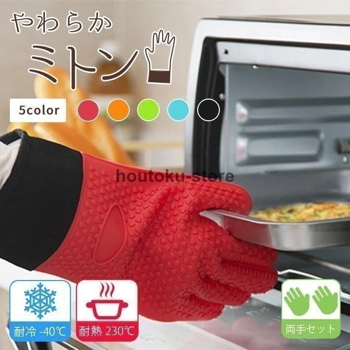 ミトン 耐熱 耐冷 シリコン 鍋つかみ 両手セット 全5色 布裏地タイプ左右兼用 防水 オーブンミトン キッチングローブ