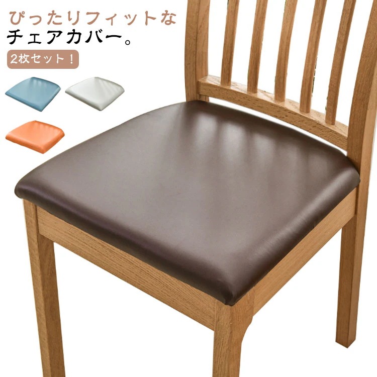 PUレザーチェアカバー 2枚セット 椅子カバー 座面用 ダイニングチェアカバー デスクチェアカバー イスカバー 座面カバー オフィスチェアカバー 防水 イス保護 ストレッチ フィット ズレない 傷防止