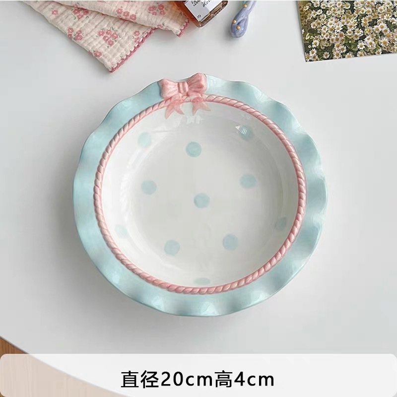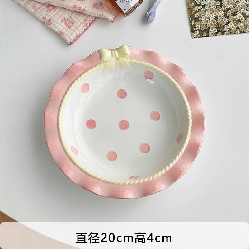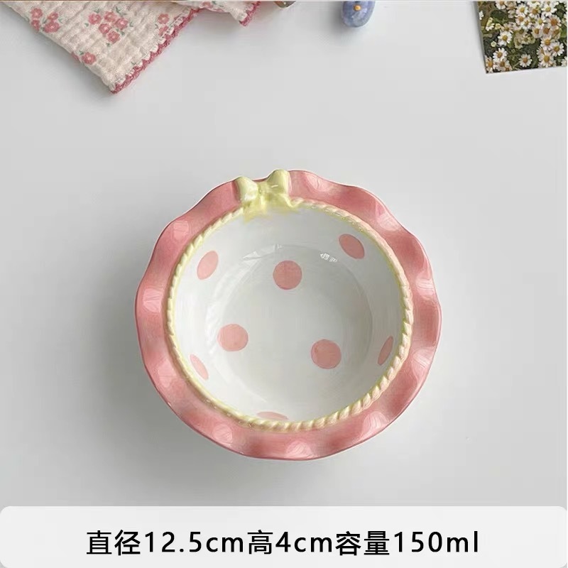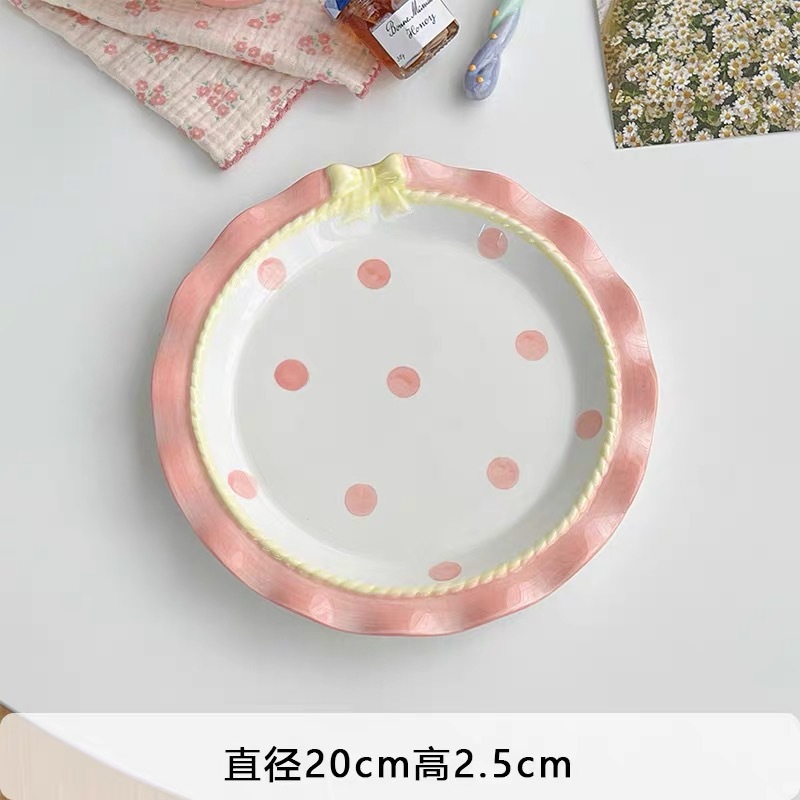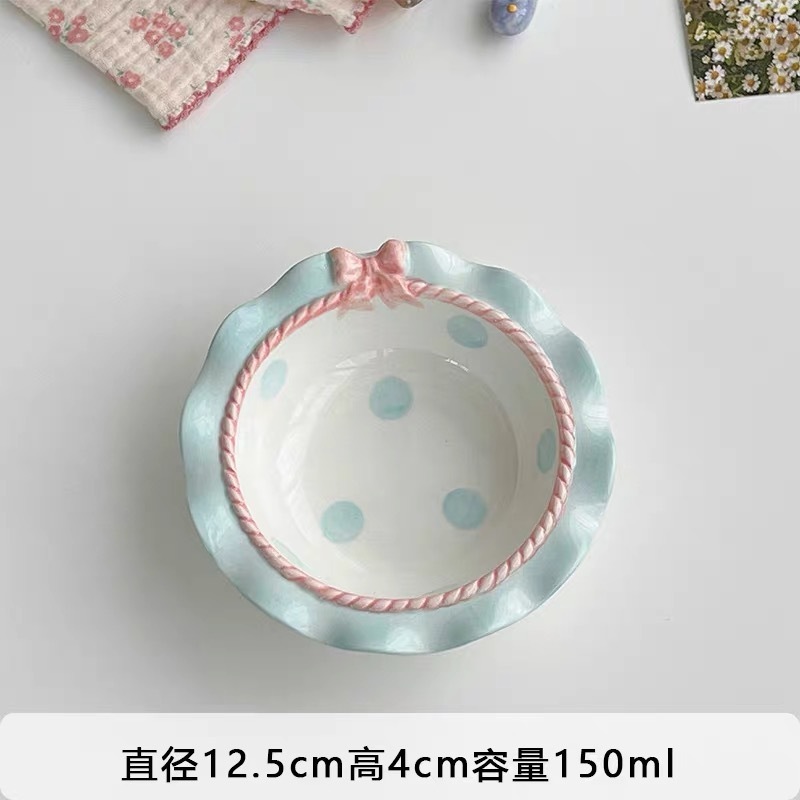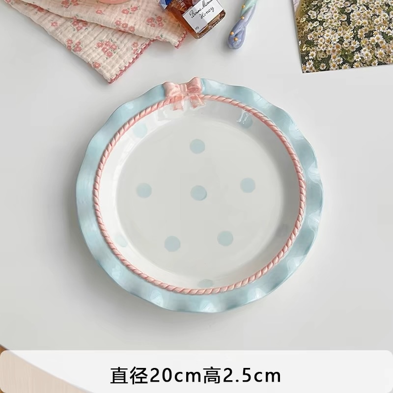 韓国風 リボン 水玉 食器 かわいい ご飯茶碗 プレート スイーツ皿 朝食プレート