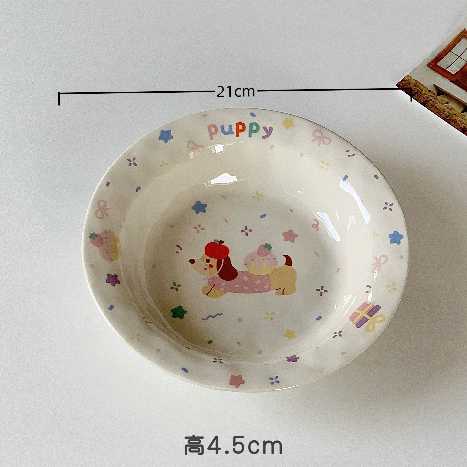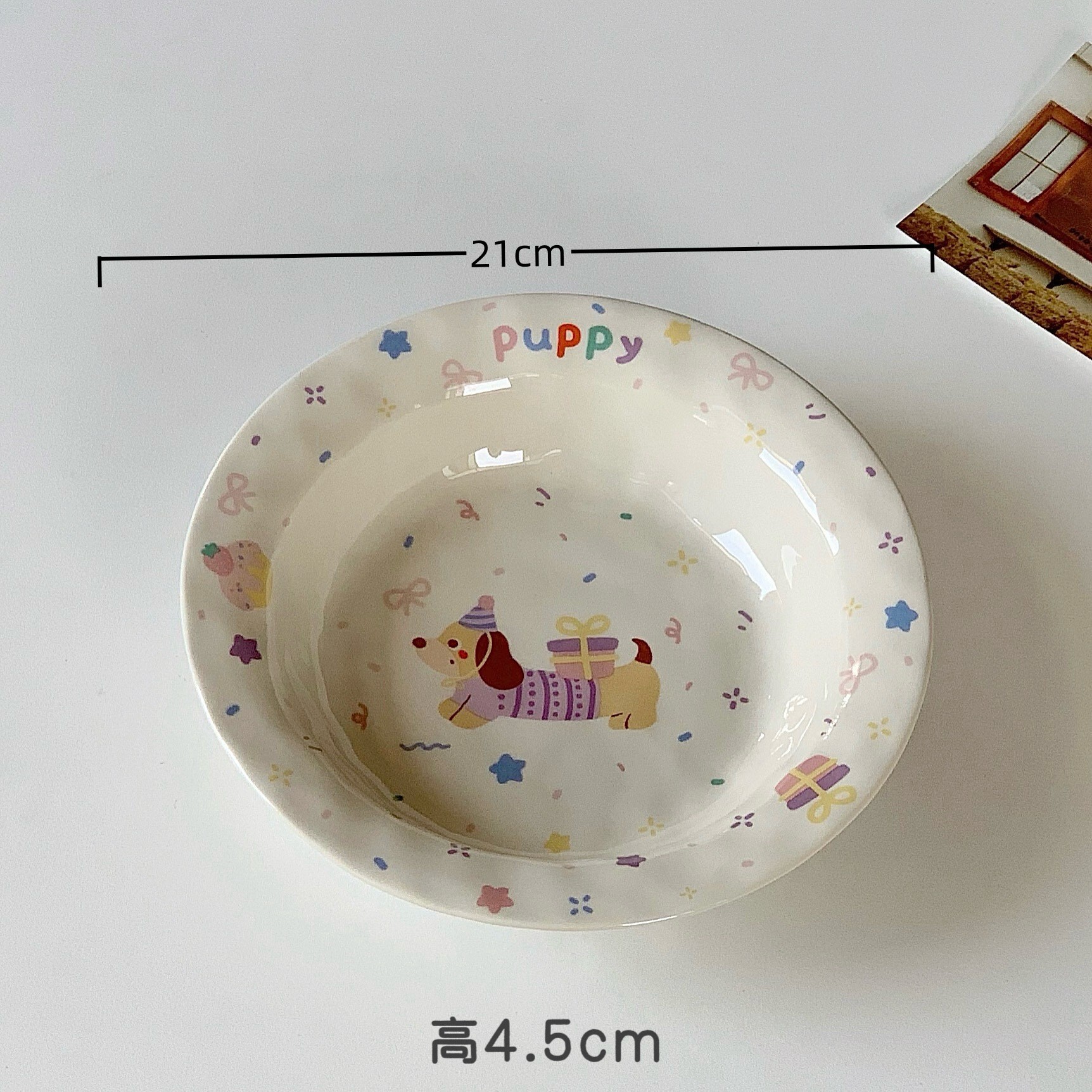ダックスフント モチーフ 食器 陶器プレート パスタ皿 つば広スープ皿 おしゃれ