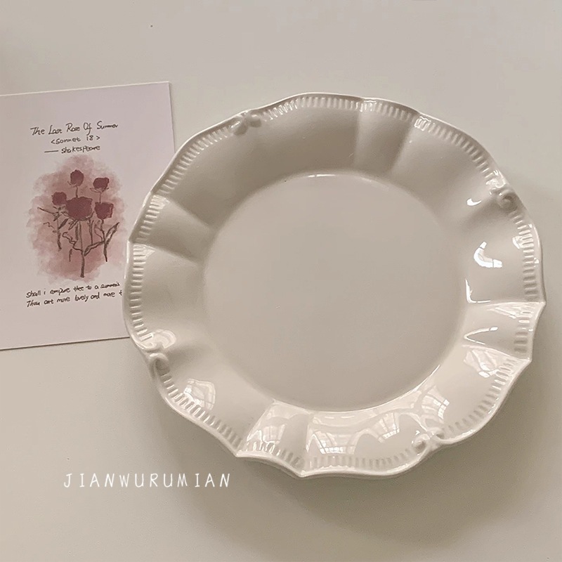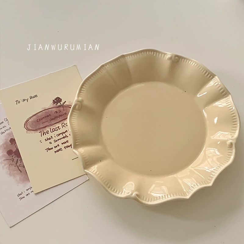 フレンチ アンバランス レリーフ 陶器プレート フルーツ皿 パスタ皿 クリーム色