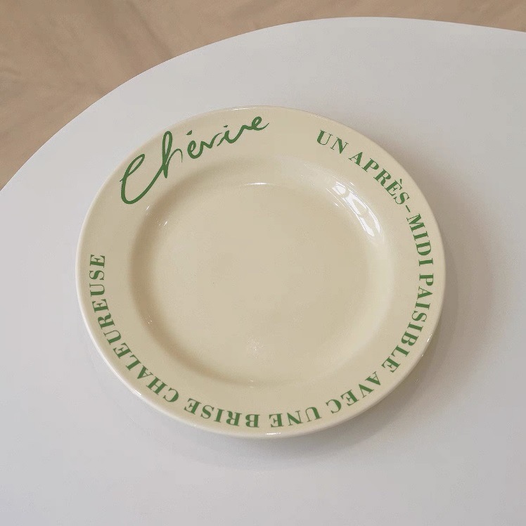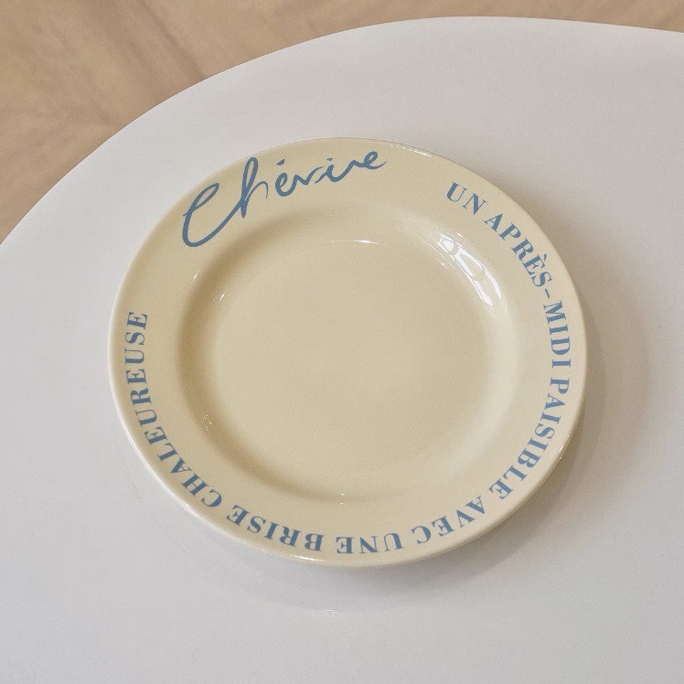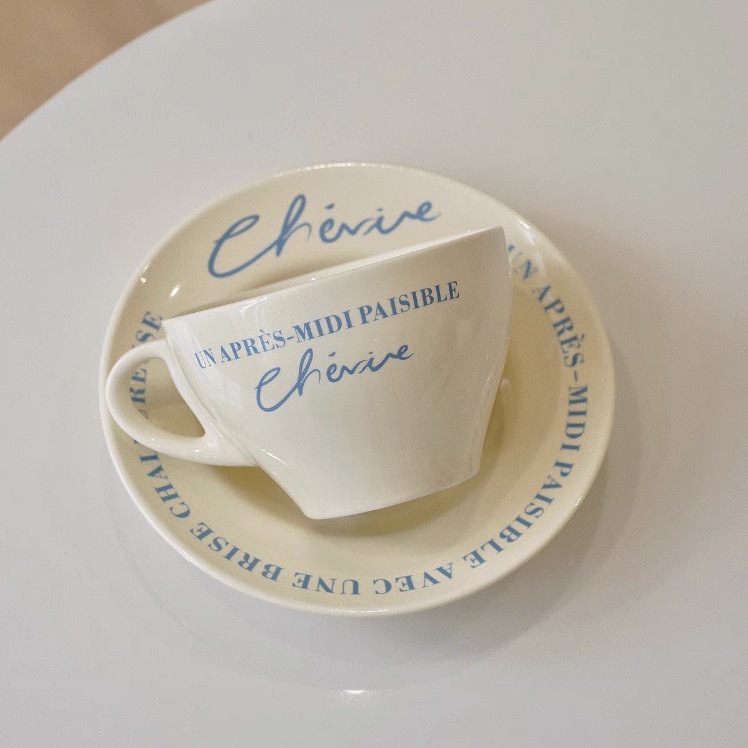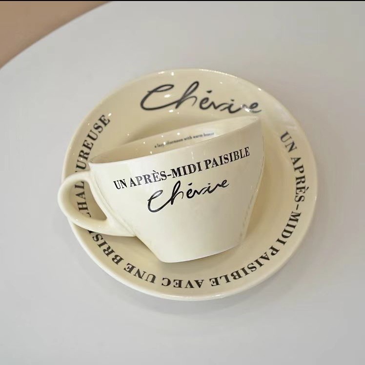レトロ フレンチ クリーム色 コーヒーカップ&ソーサー 朝食マグ 陶器 プレート