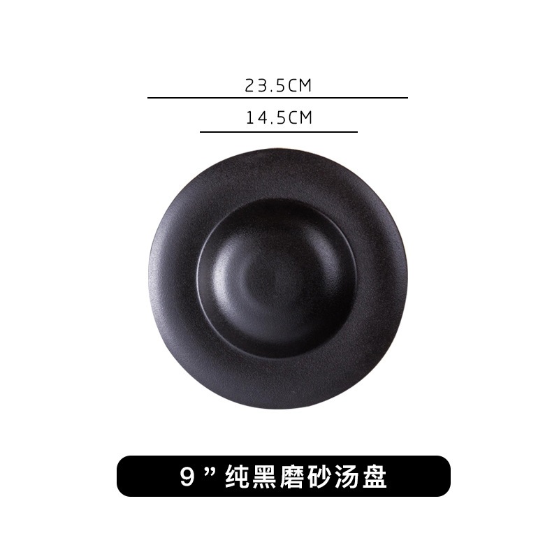 マットゴールド 陶器 スーププレート つば広パスタ皿 黒色 和洋兼用