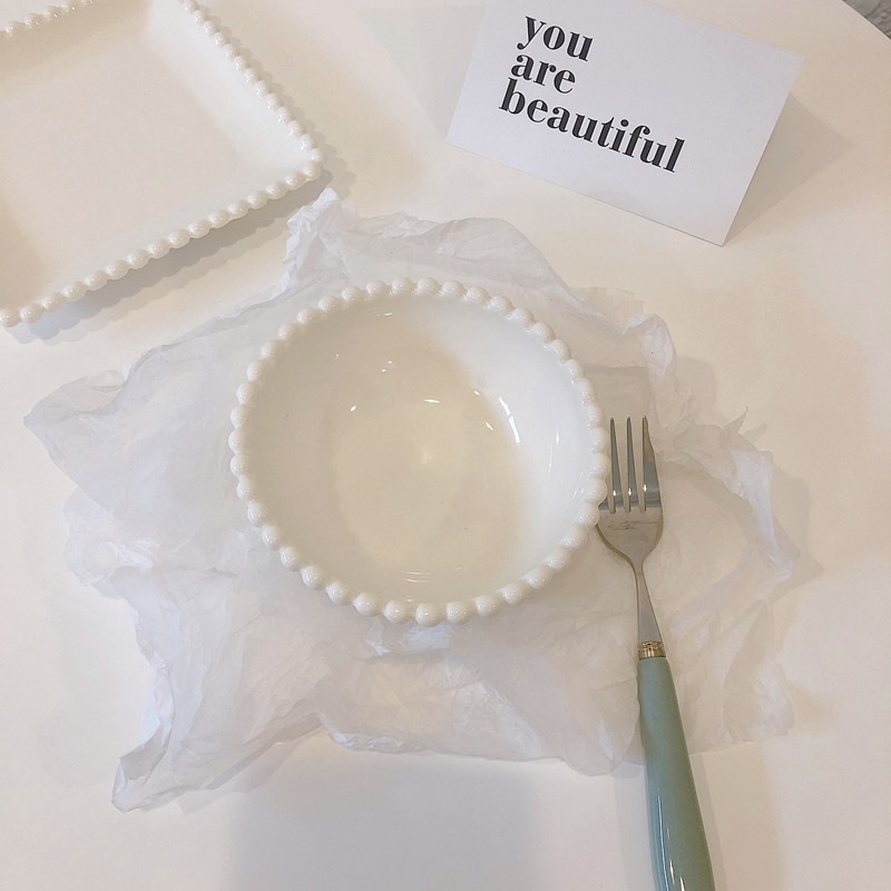 パールエッジ 陶器ボウル 6インチ スイーツボウル 朝食碗 韓国風 ケーキ皿