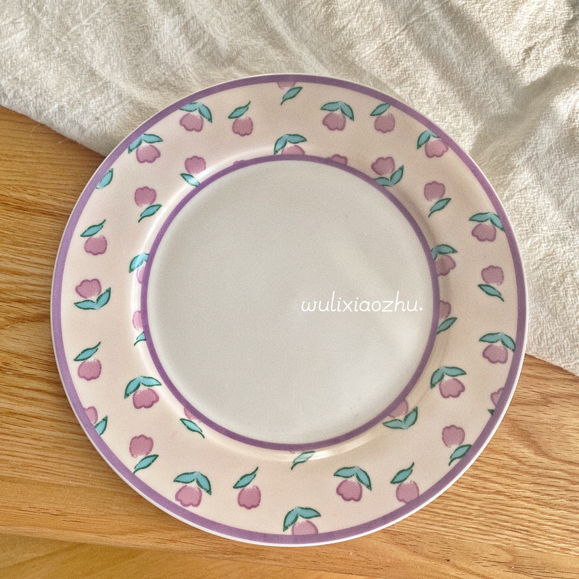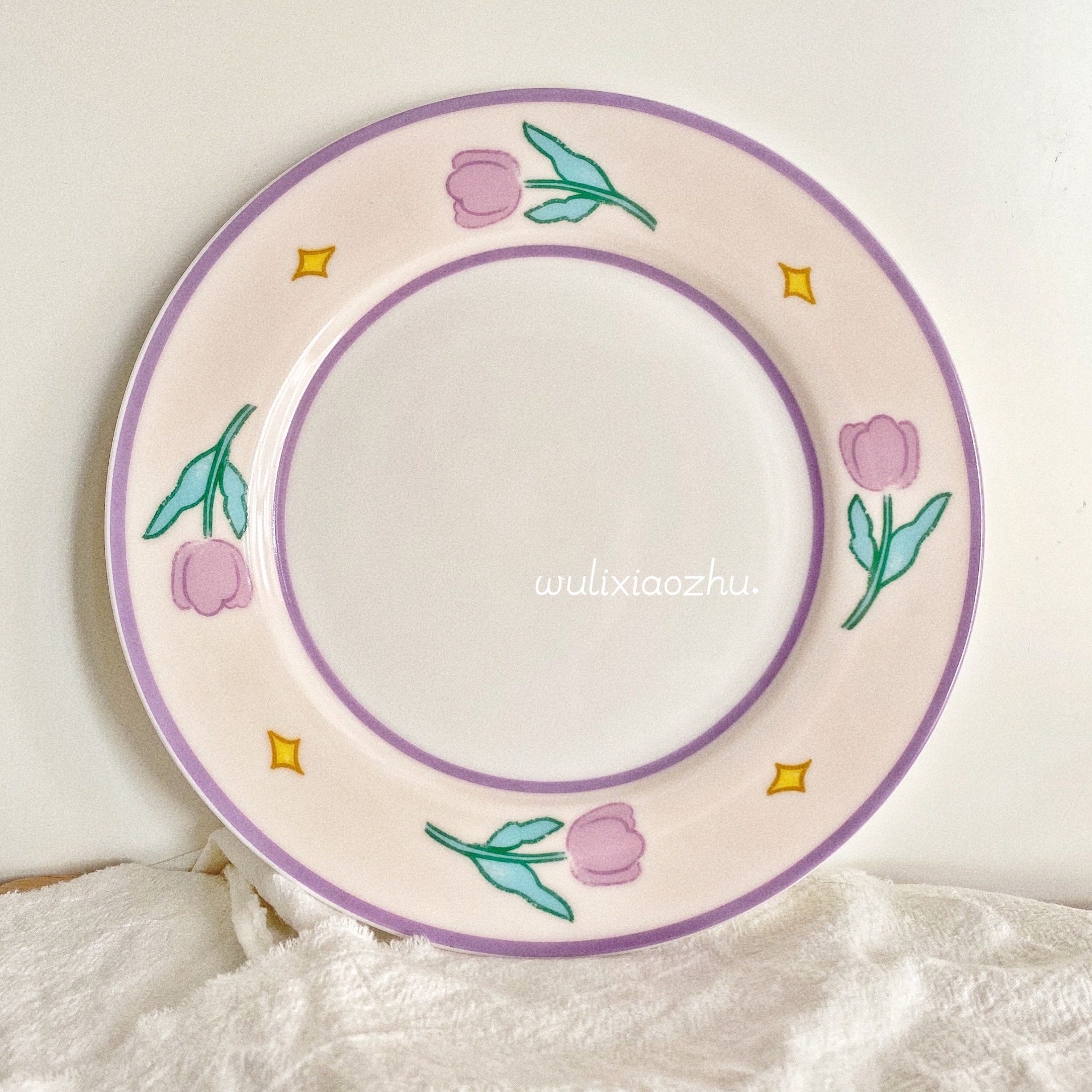 ラベンダー チューリップ レトロプレート 朝食皿 スイーツ皿 陶器
