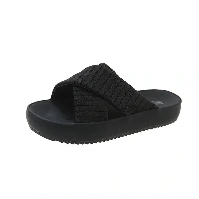 25 フラットサンダル 厚底 クロスミュール 35センチヒール 柔らか クッション ブラック ホワイト カジュアル ママコーデ ソフト リゾート レディース サマー靴