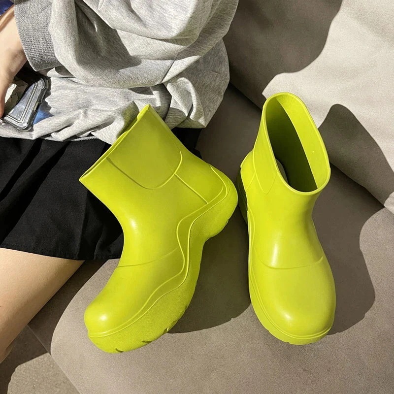 アボカド レインブーツ レディース おしゃれ アウター用 ビッグトゥ アウトドア ショートブーツ 厚底 レインシューズ