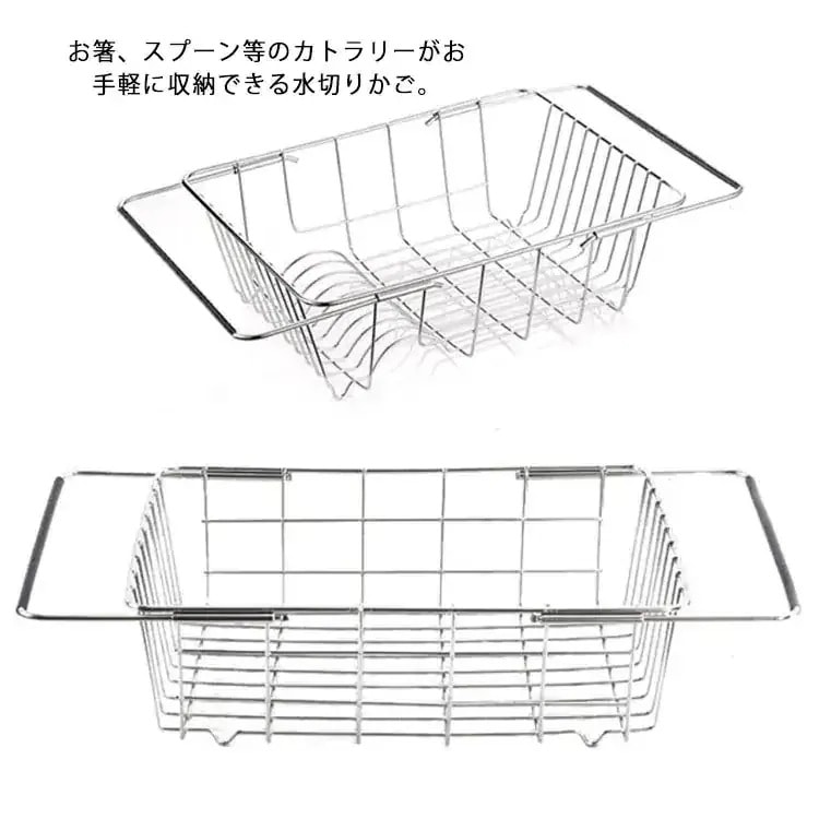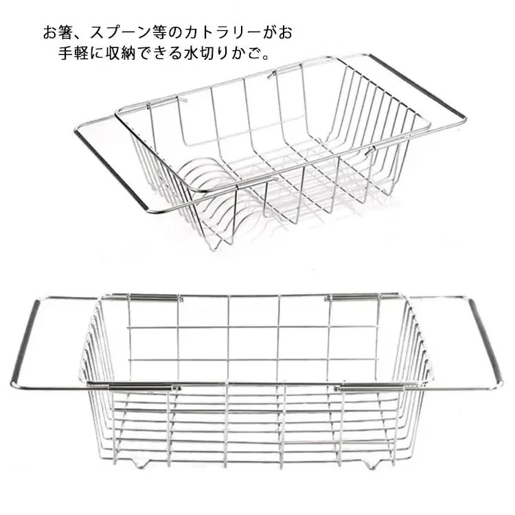 水切りかご 水切りラック 伸縮可能 ステンレス 大容量 食器収納 水切り 皿収納 キッチンラック 食器かご 台所用 キッチン用品 省スペース 滑り止め 収納用品
