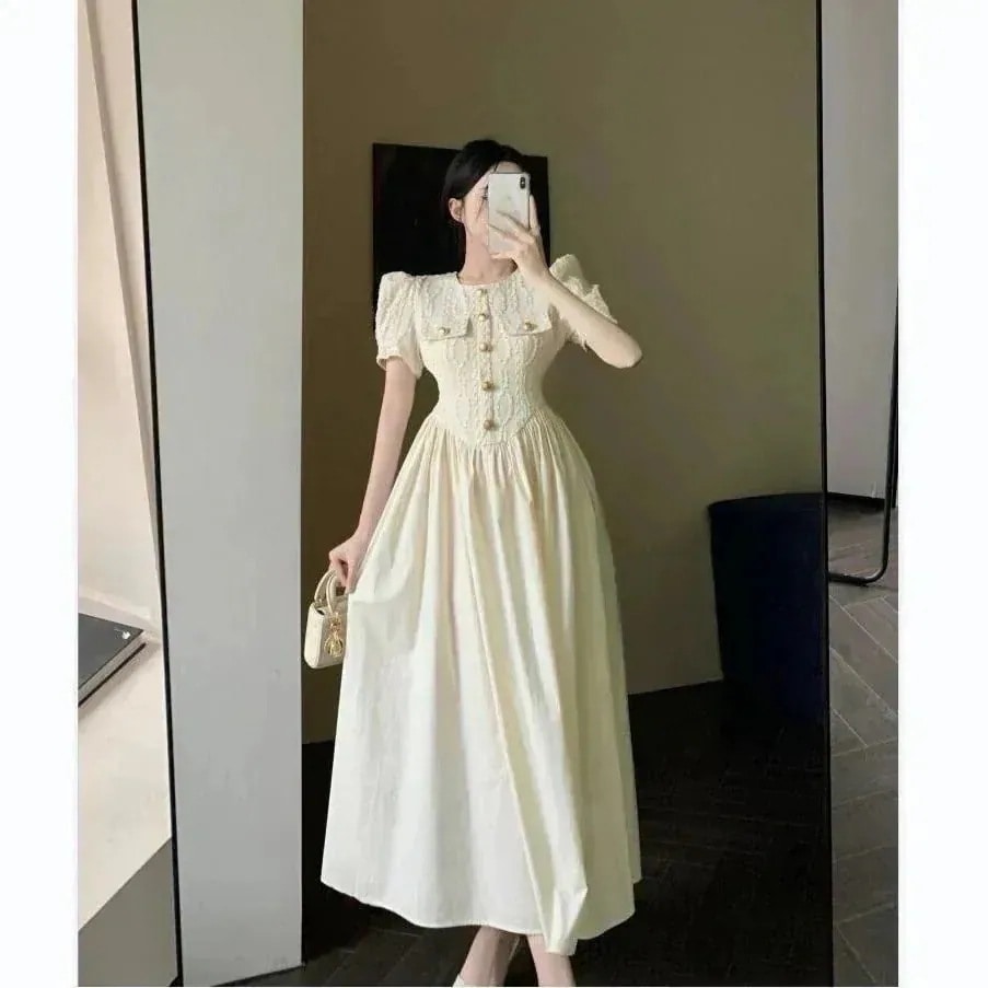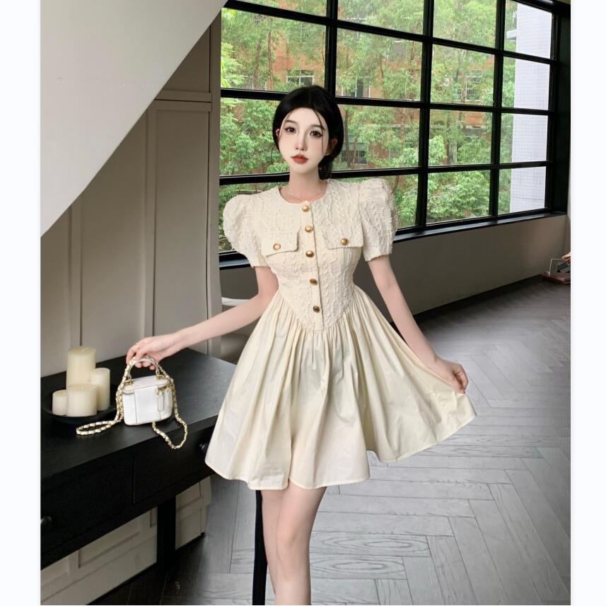 ワンピース24新作韓国風デザインニッチパフスリーブフランス気質ドレスガールフレンドドレス