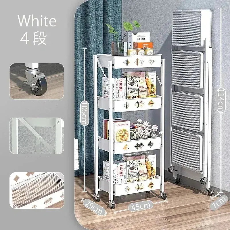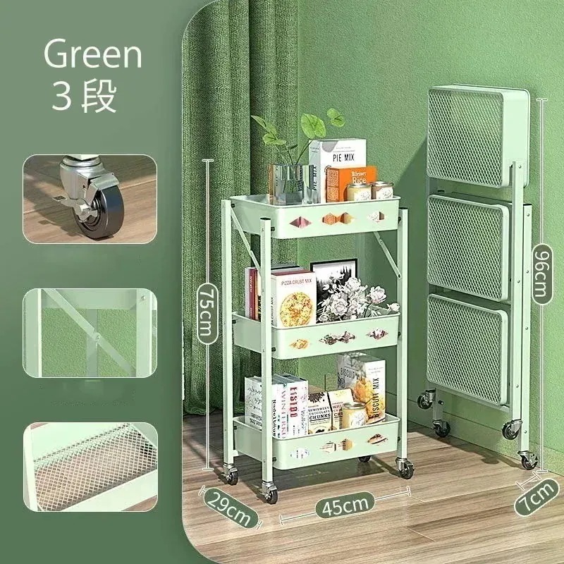 収納ラック 移動自由な収納ワゴン 折り畳み式収納ワゴン 小物収納ワゴン キッチン収納 キャ付き カーボン材質収納ワゴン 組み立て必要なし
