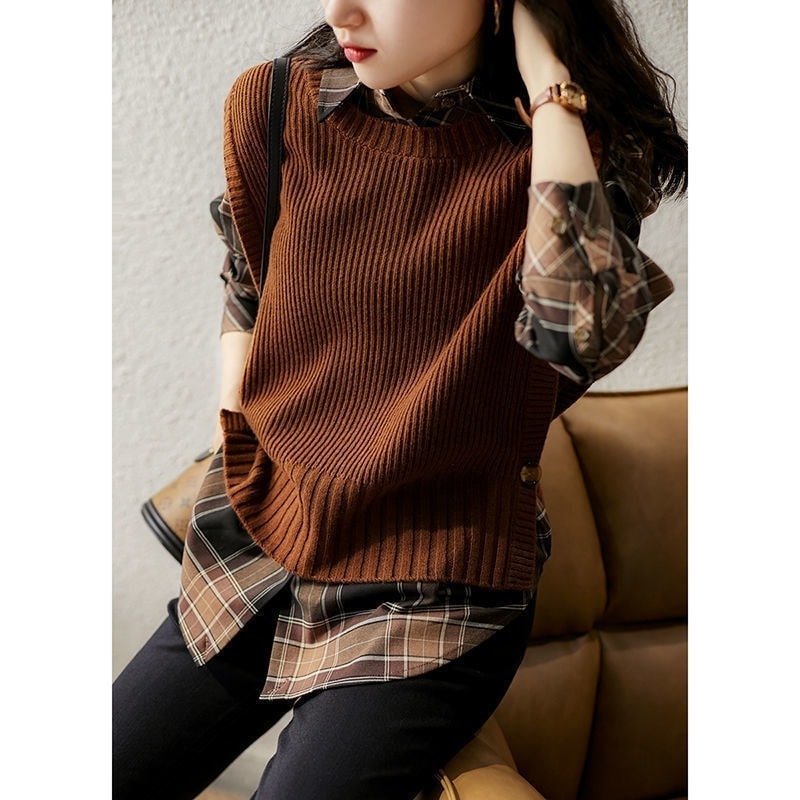 冬アウター 新作 おしゃれ 丸ネック 日韓 カジュアル ゆったり ベスト ノースリーブ ニットベスト タンクトップ 百掛け AWアウター