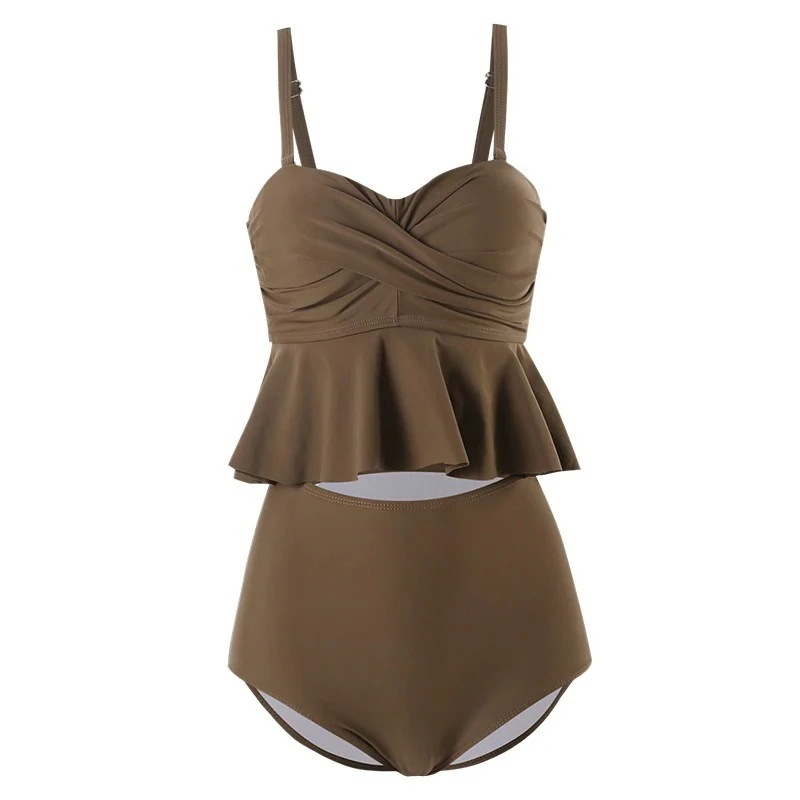 水着 韓少女保守分離おしゃれ気質荷叶边ハイウエストスリミング着痩せ可愛い温泉海辺の休暇水着水陆两用