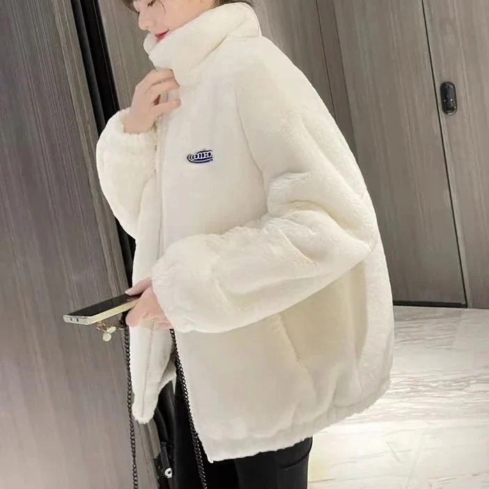 冬アウター ラムウールジャケット女性秋冬新作ファッション外国ガス増粘ルーズ両面ファー付きトップスジャンパー ブルゾン
