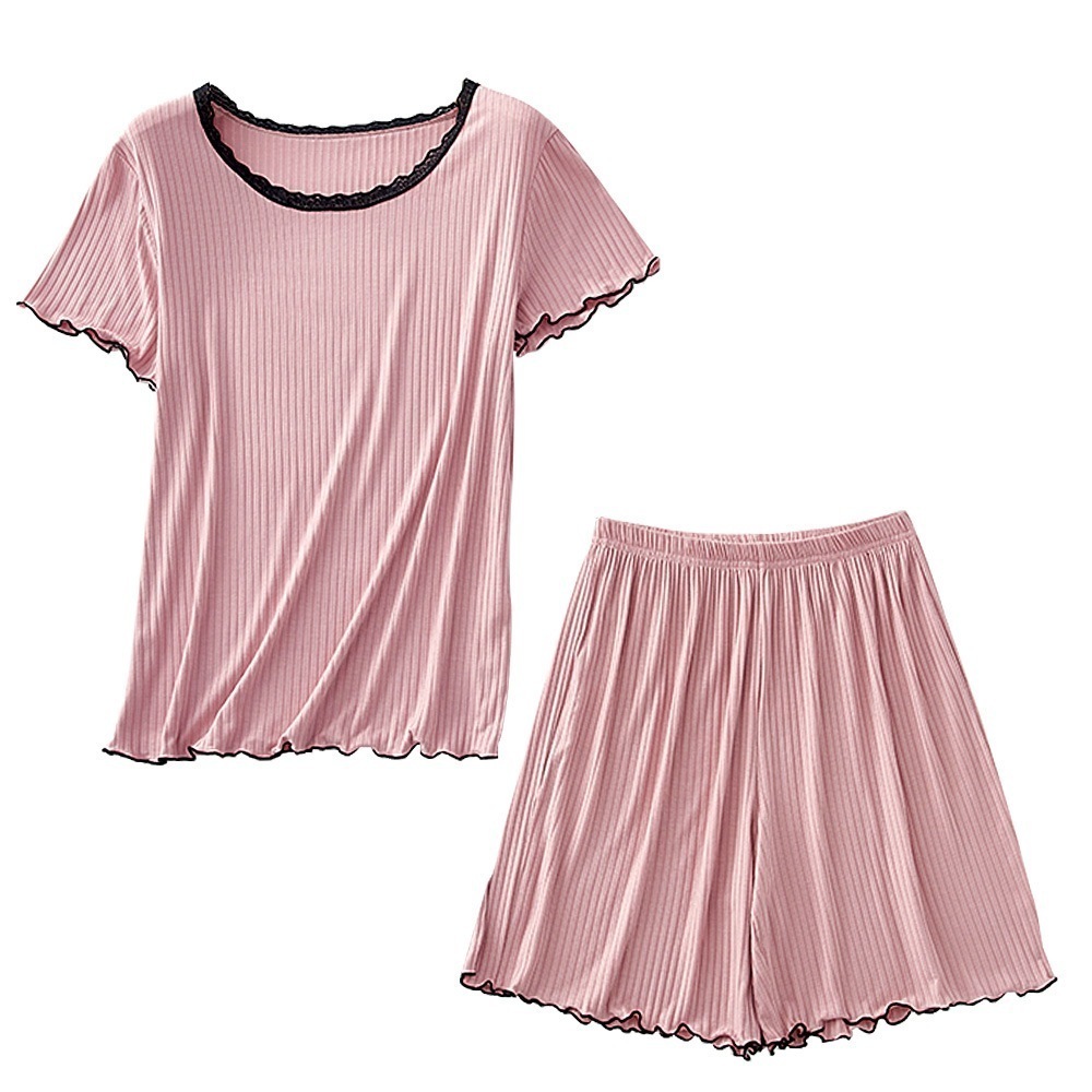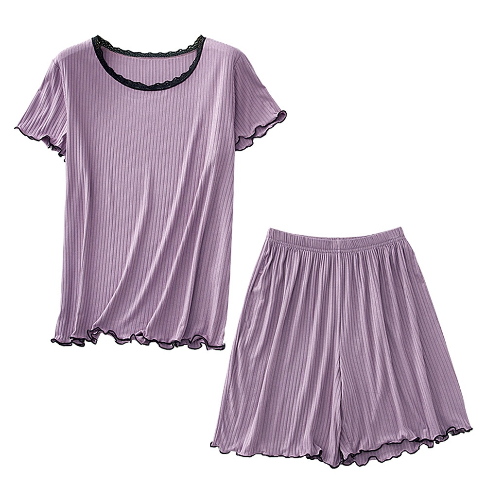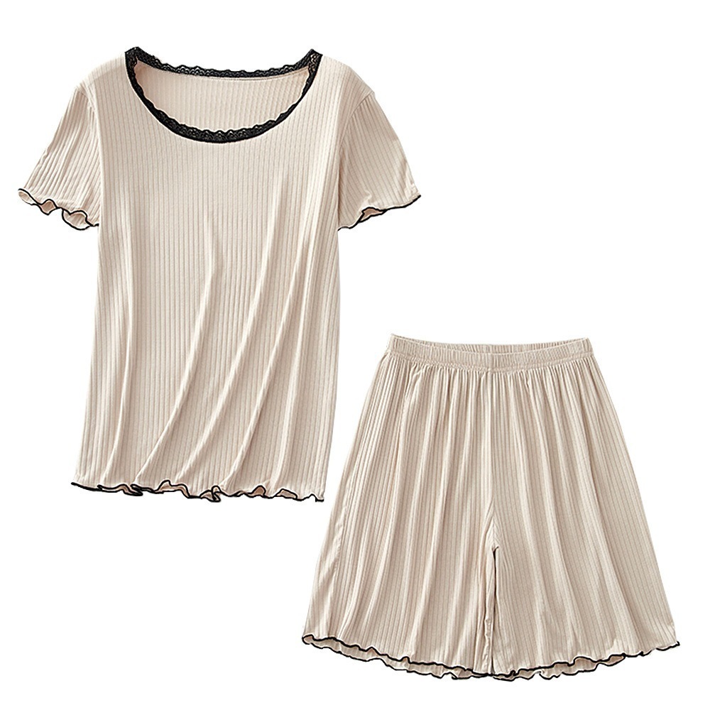 ルームウェア 半袖 レディース パジャマ 選べる 上下セット ワンピース 薄手 夏 プルオーバー とろみ 涼しい 襟レース メロー rr-012