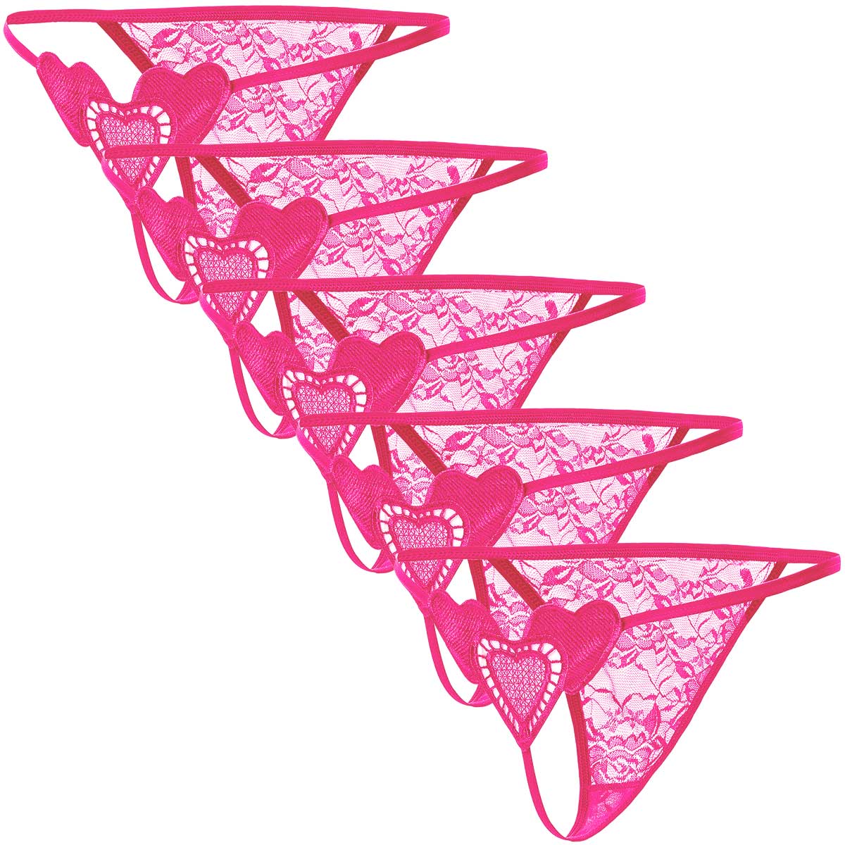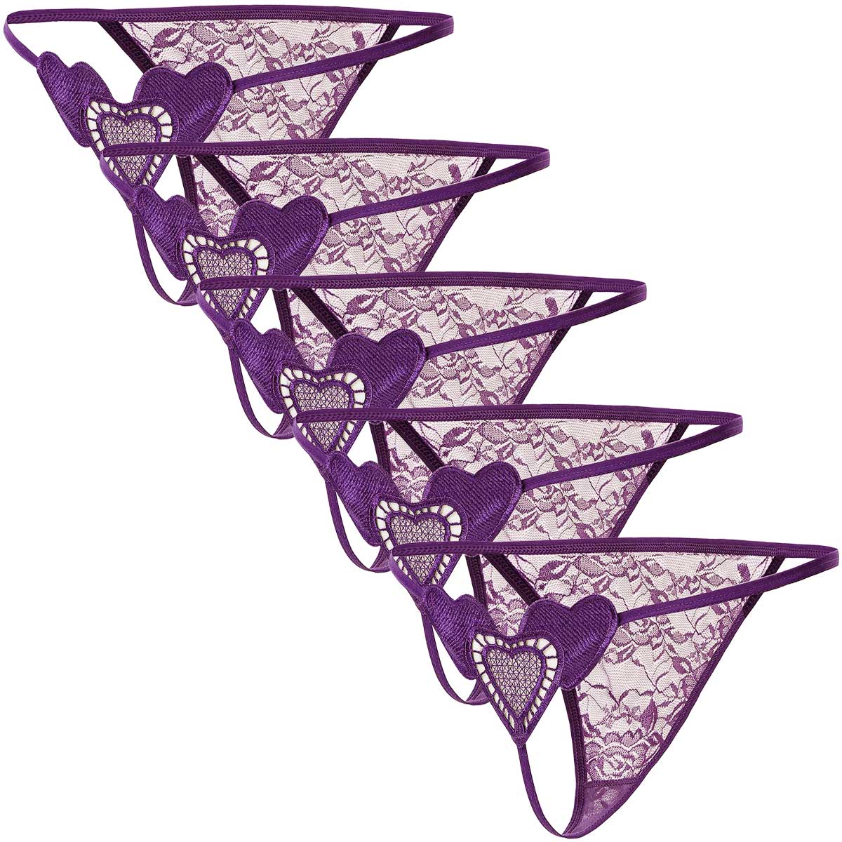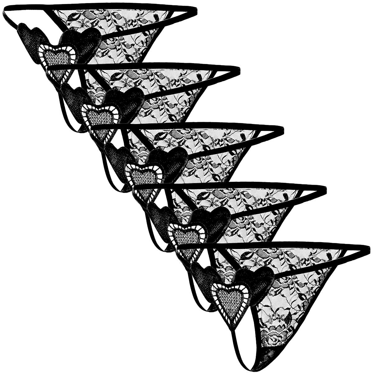 Tバックショーツ 5枚セット ハートモチーフ レース レディース 花柄 セクシー ストリング ランジェリー 透ける エロい 勝負下着 ショーツ 黒 白 赤 紫 青 rt-045