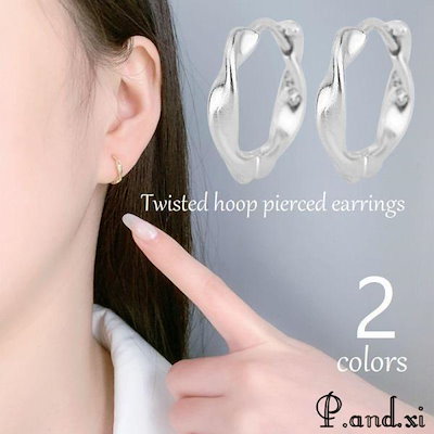 送料無料フープピアス レディース アクセサリー ツイストフープ 輪っか 小ぶり 耳飾り ゴールドカラー シルバーカラー シンプル デイリー オフィス ベ
