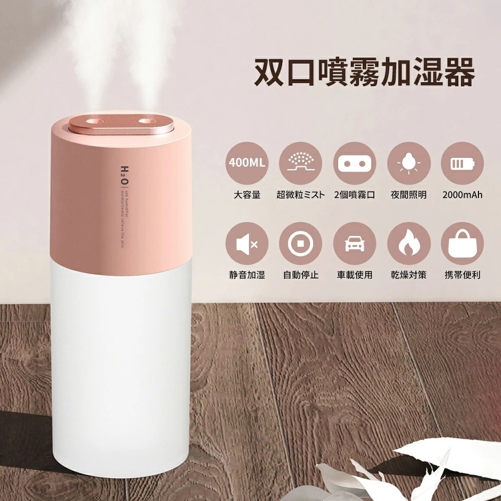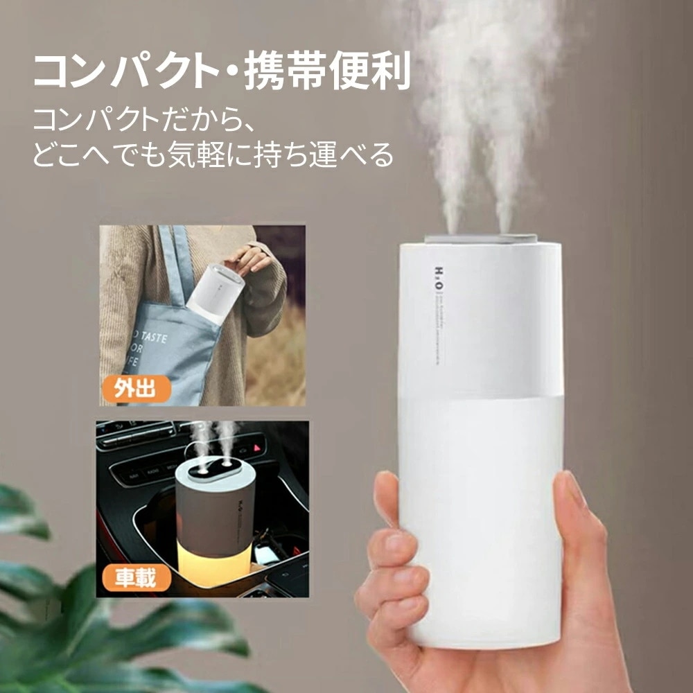 加湿器 コードレス 超音波 卓上 車載 小型 大容量 双口 噴霧 加湿器 充電式車載 オフィス USB おしゃれ かわいい コンパクト 除菌 静音 卓上加湿器 LEDライト リビング 空気清浄