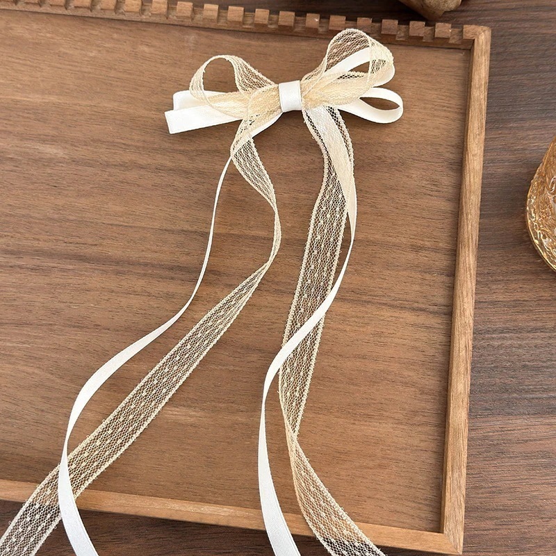 レースリボンヒラヒラヘアクリップ バレエスタイル 女の子 切れ毛 サイド前髪 クリップ ヘアクリップ