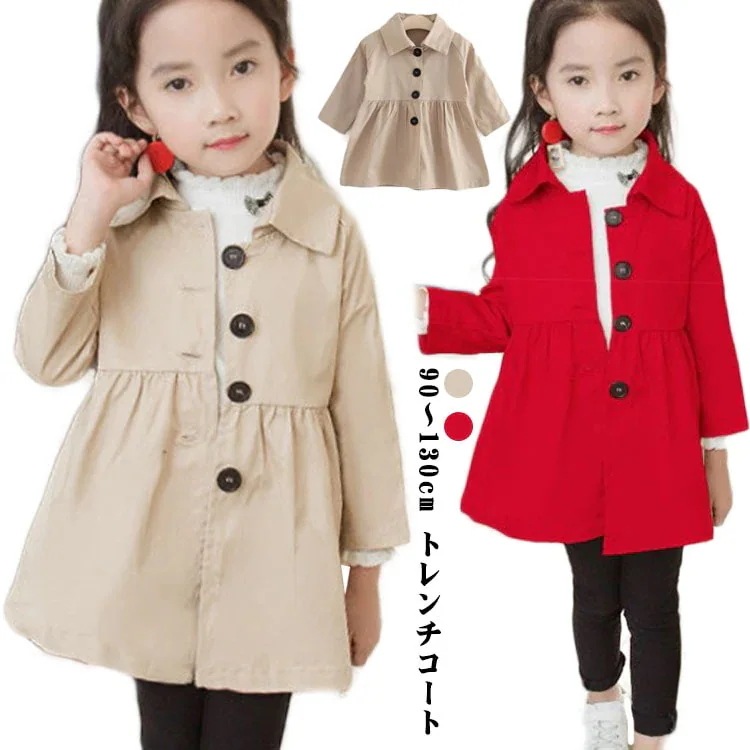 無地 キッズ トレンチコート コート プチプラ こども服 子ども服 110cm 通学 通園 90cm 女の子 子供服 1cm スプリングコート 130cm 長袖 プレゼント ベージュ