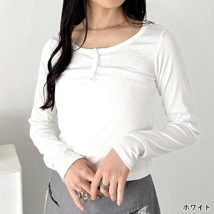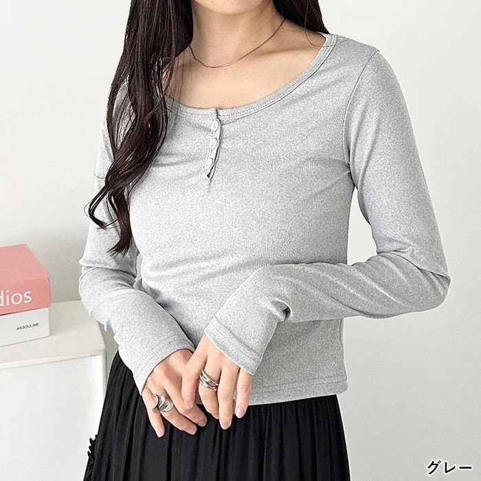 【新鮮なデザイン!】【送料無料】ヘンリーネック 長袖 トップス カットソー Tシャツ レディース【国内発送】