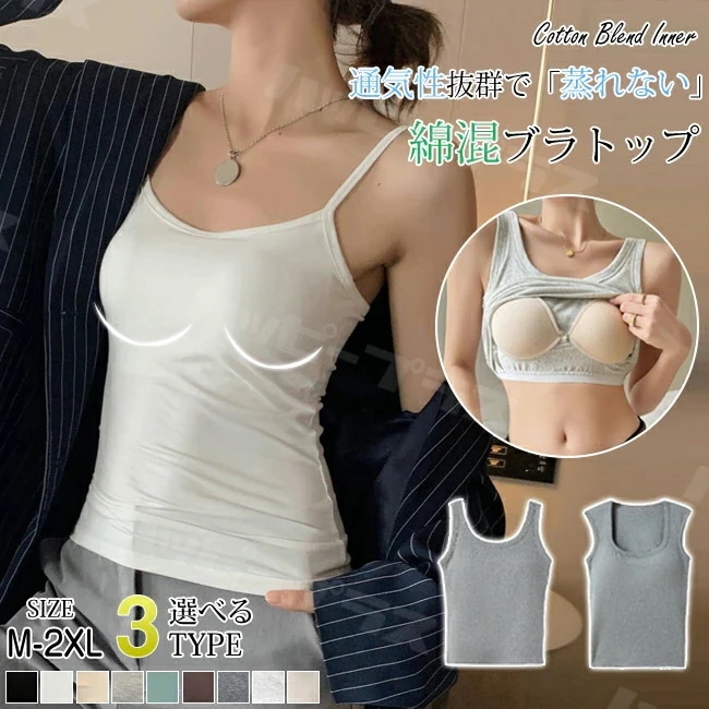 3タイプ ブラトップ ブラキャミ カップ付きインナー キャミソール タンクトップ パッド U型 大きいサイズ ノンワイヤー サラサラ 吸湿 吸水性 コットン アンダーゴム