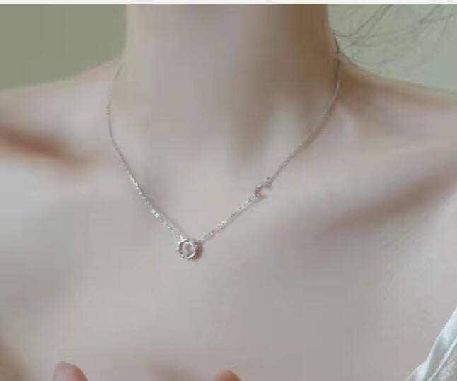 美しい首元ネックレス太陽と月がつながるレプレミアムディースシンプル錆びないアクセサリー韓国ファッション鎖骨チェーン個性豊か飾り物流行りエレガントプレゼントネック