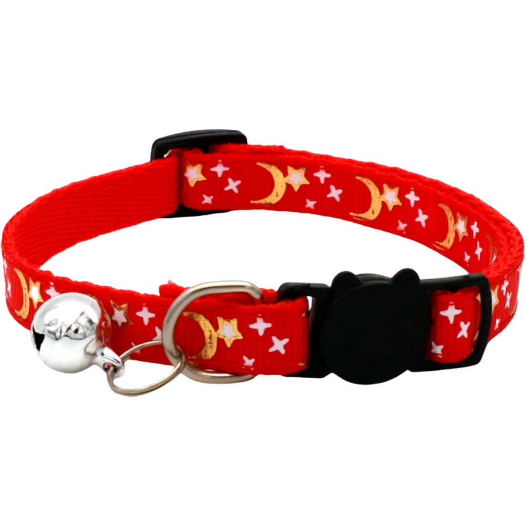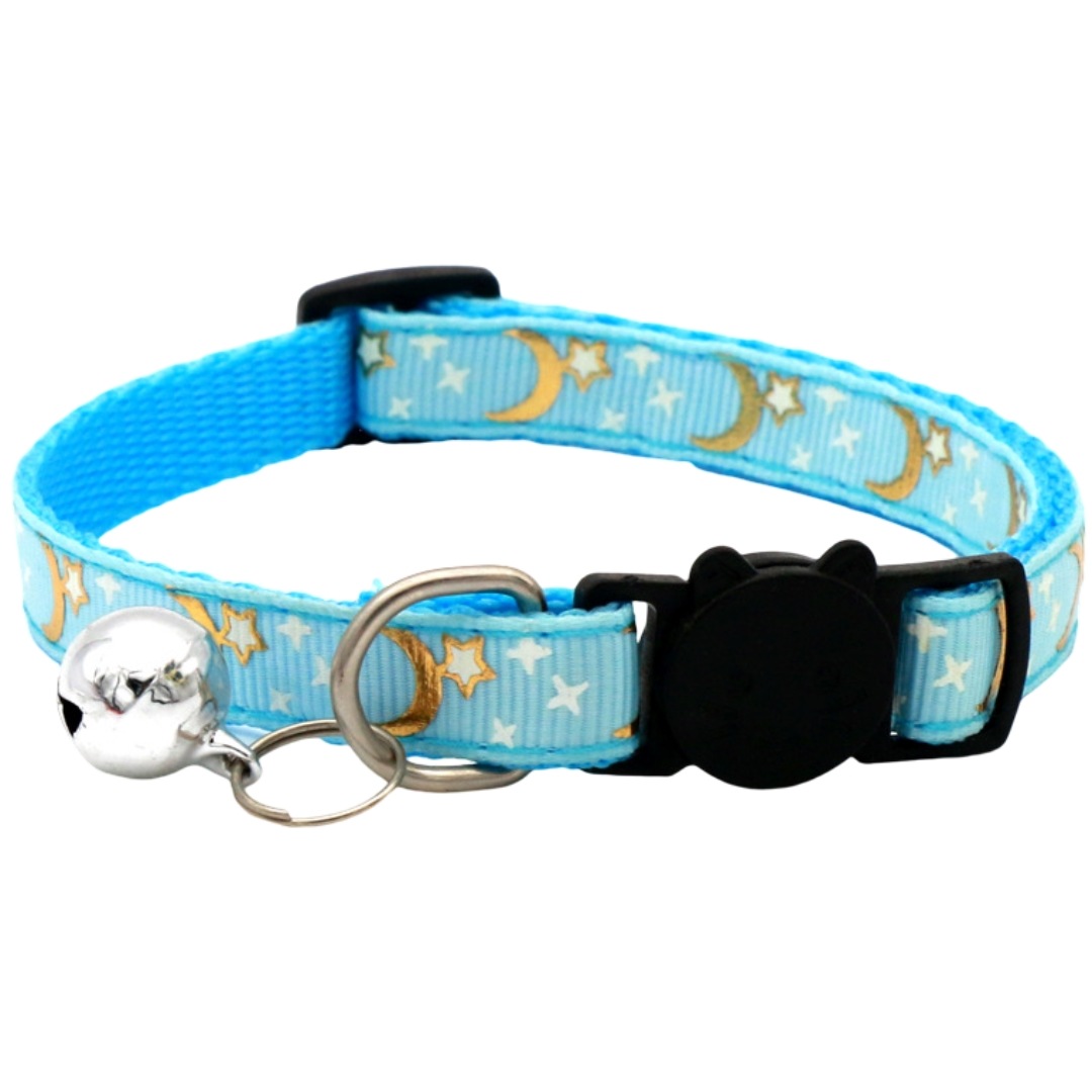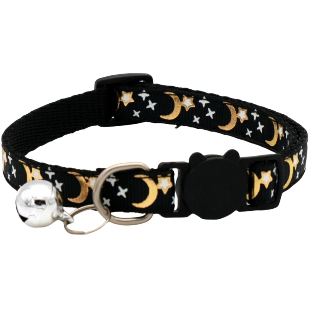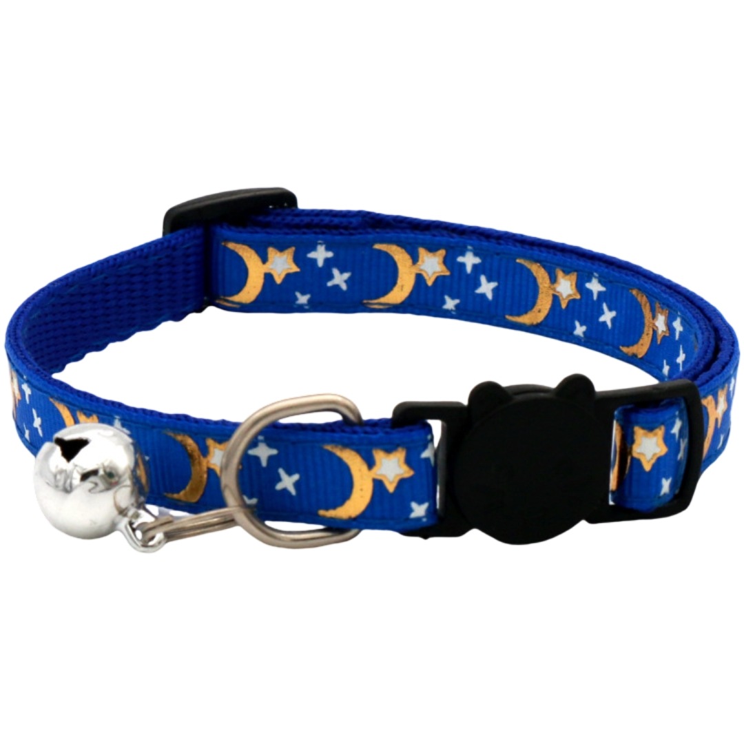猫用首輪 セーフティバックル CATカラー 鈴付き くびわ チョーカー 星 月 柄 ねこ 愛猫 ネコ用品 ペットグッズ おめかし 軽い 軽量 可愛い
