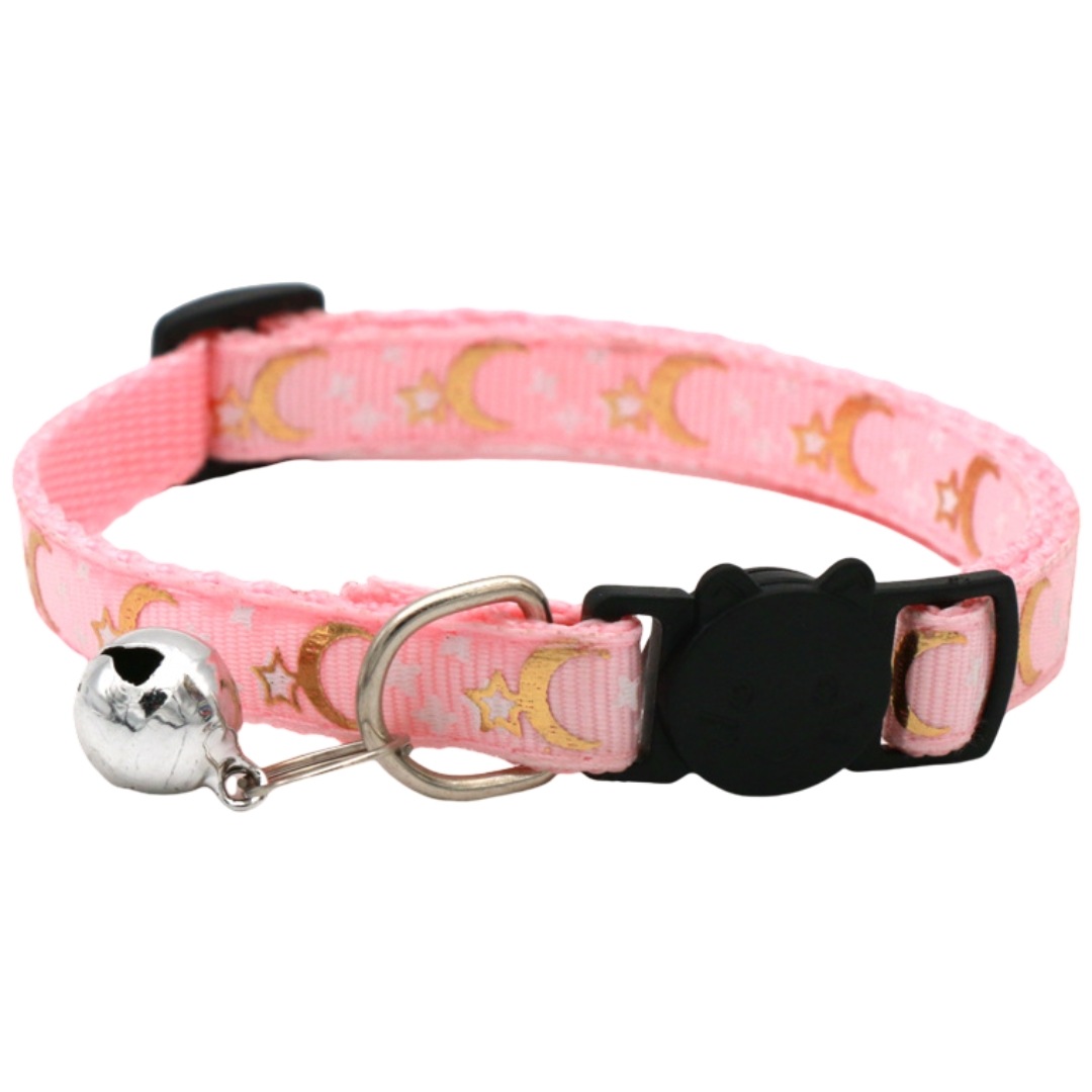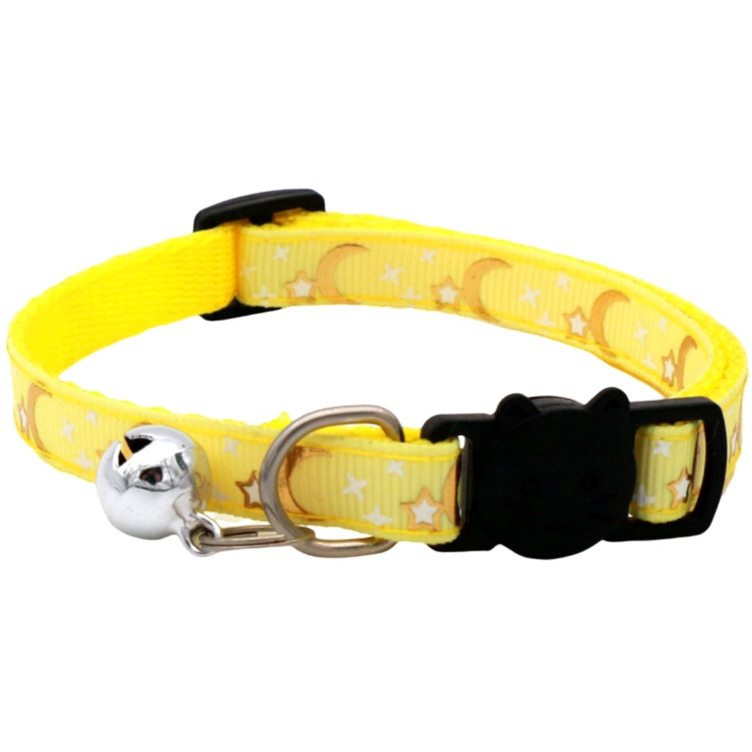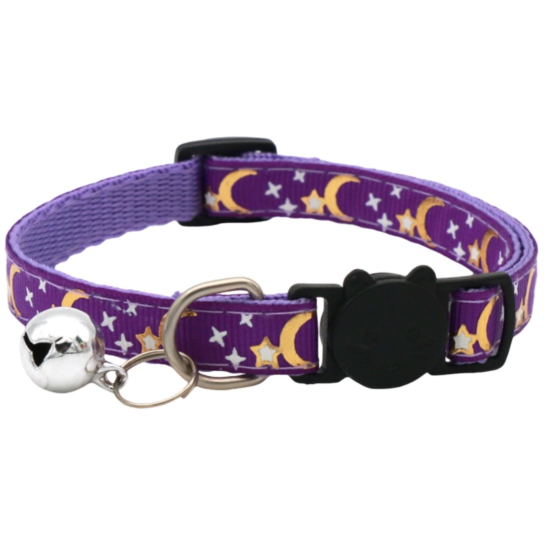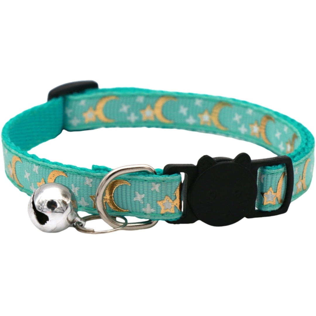 猫用首輪 セーフティバックル CATカラー 鈴付き くびわ チョーカー 星 月 柄 ねこ 愛猫 ネコ用品 ペットグッズ おめかし 軽い 軽量 可愛い