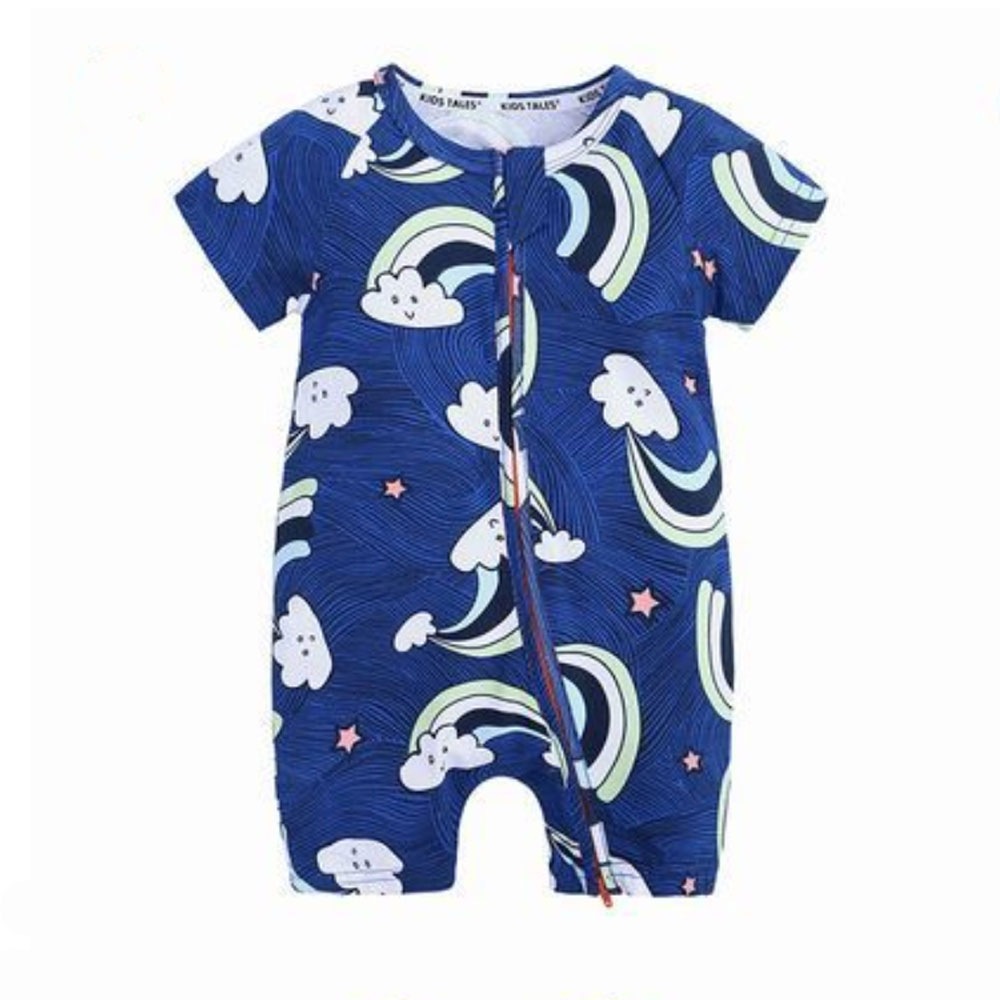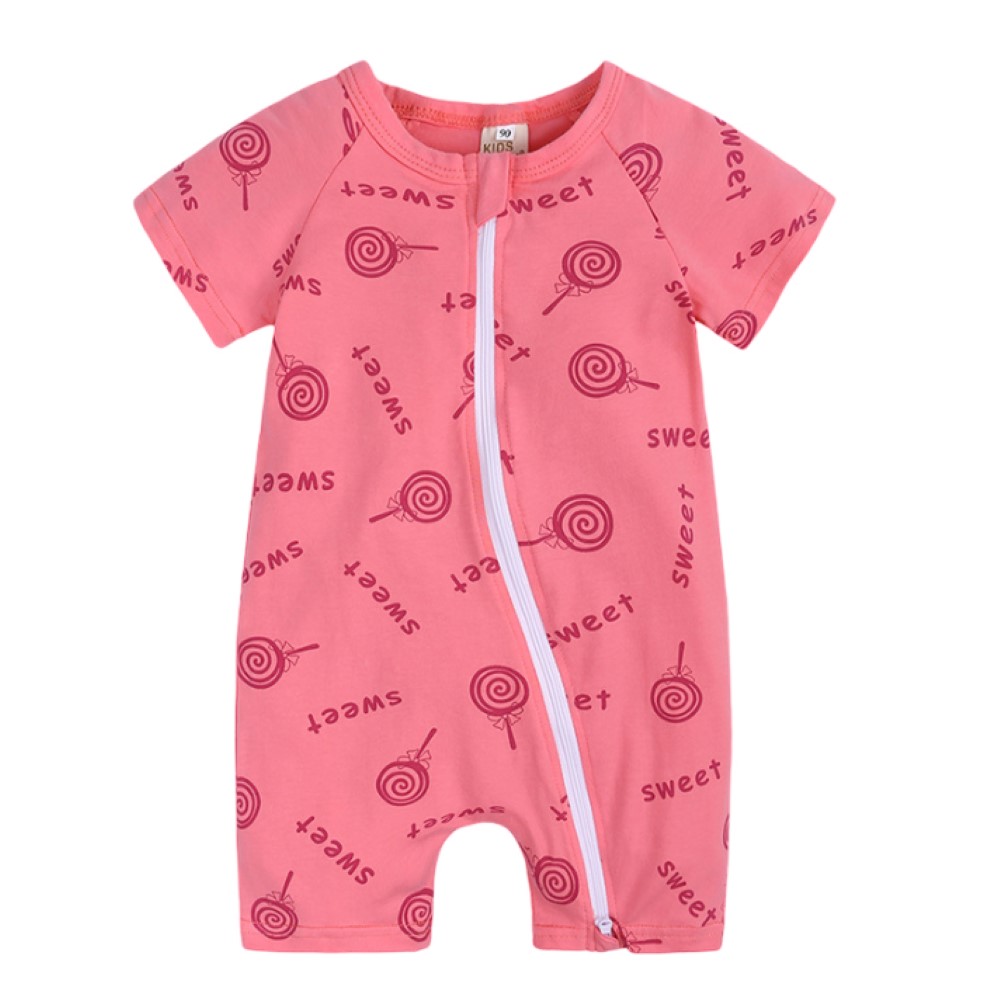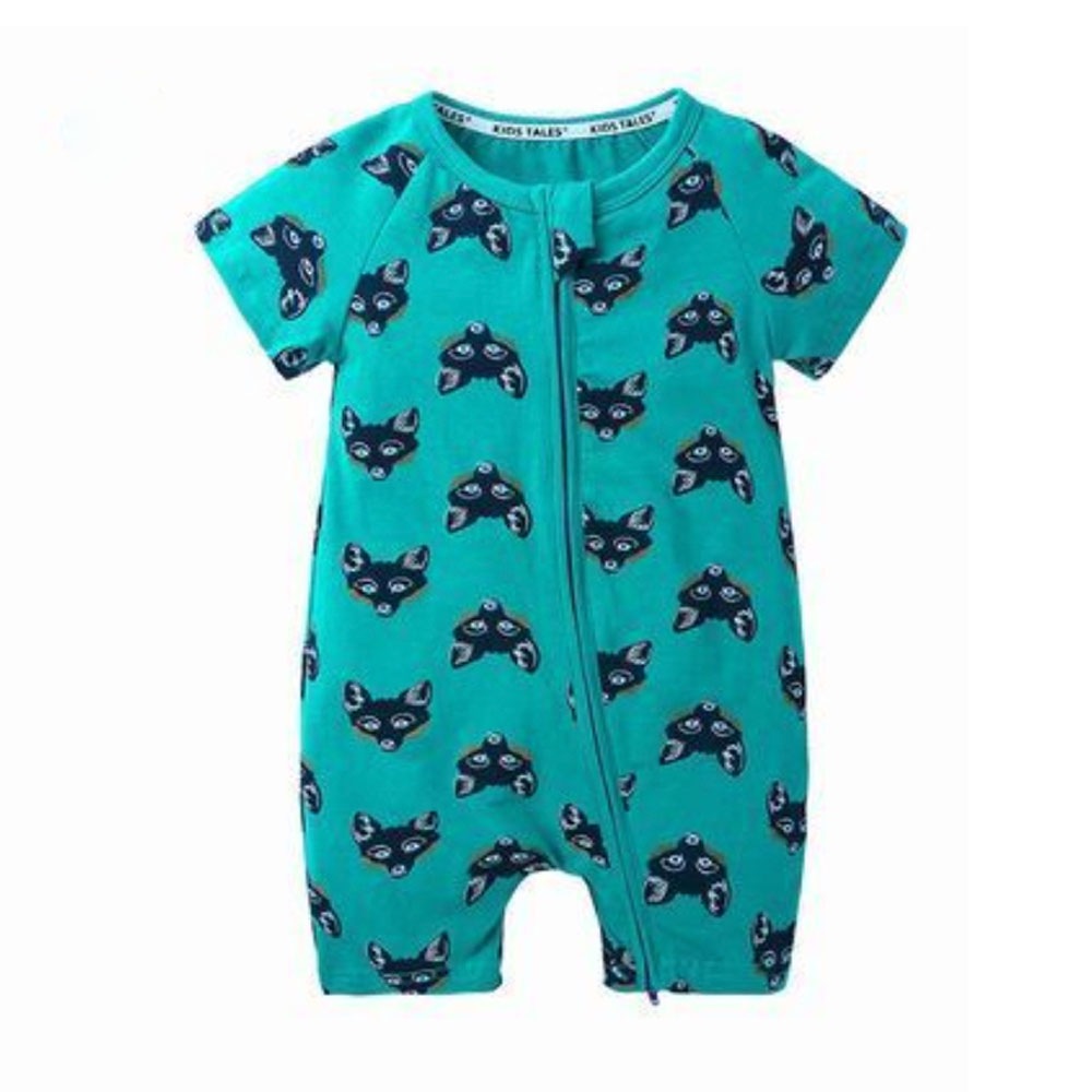 カバーオール ロンパース つなぎ 半袖 半ズボン 短パン 前開き ジップアップ ベビー服 総柄 デザイン豊富 チャック ファスナー 可愛い かわいい