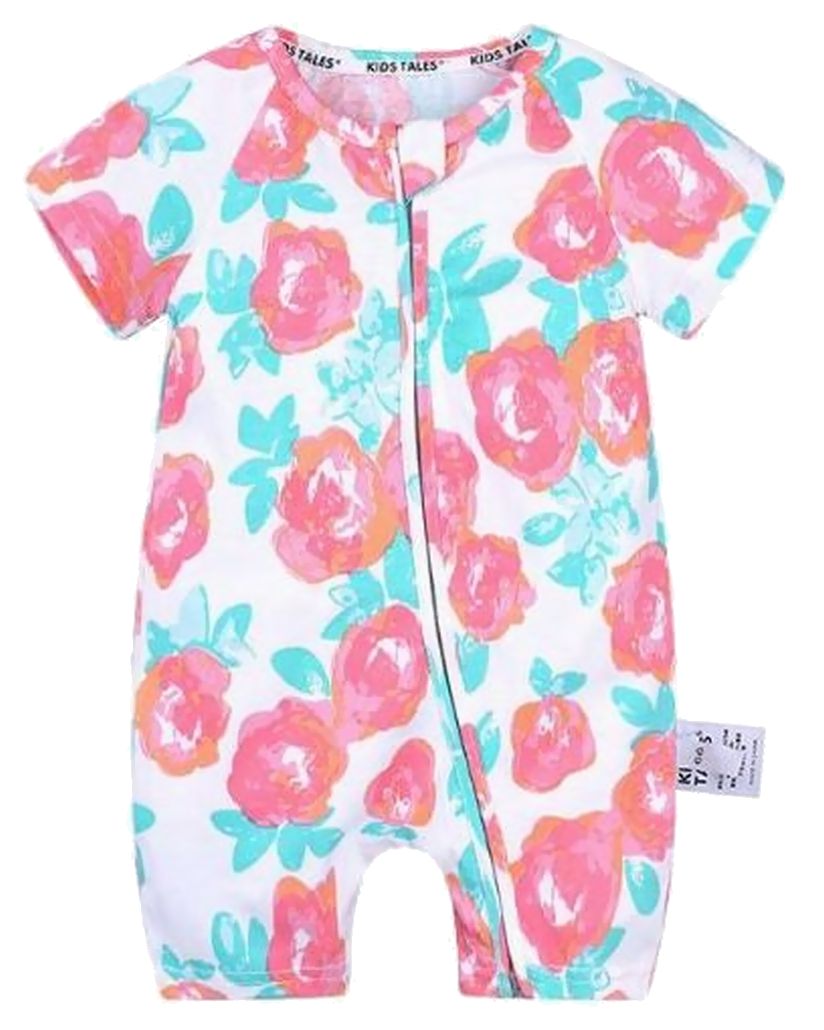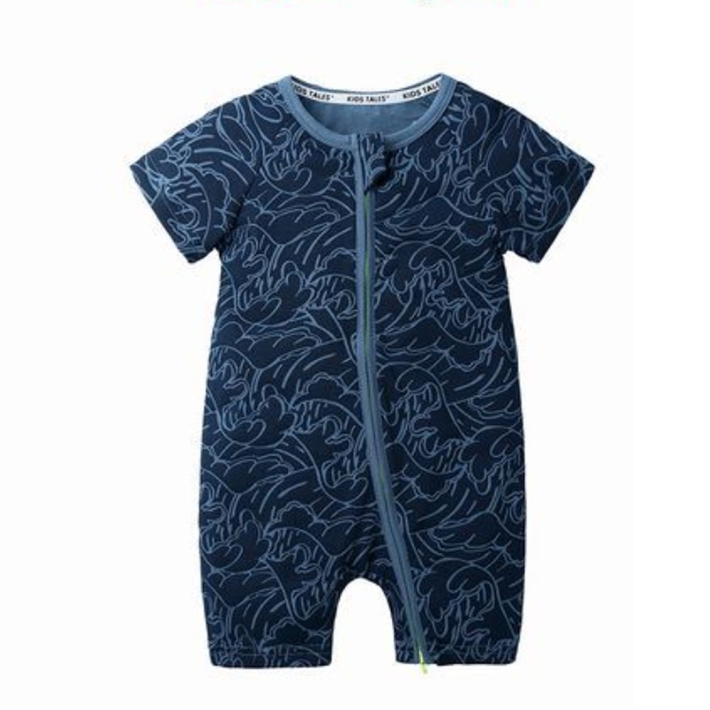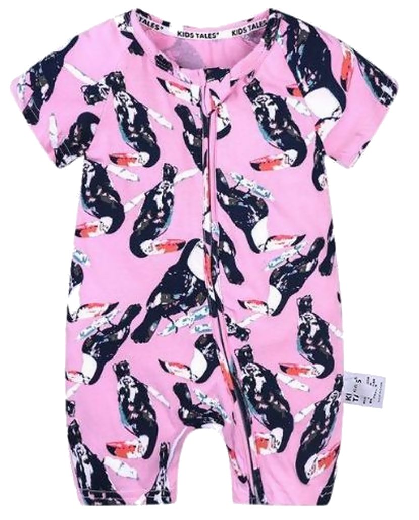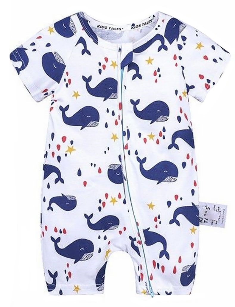 カバーオール ロンパース つなぎ 半袖 半ズボン 短パン 前開き ジップアップ ベビー服 総柄 デザイン豊富 チャック ファスナー 可愛い かわいい