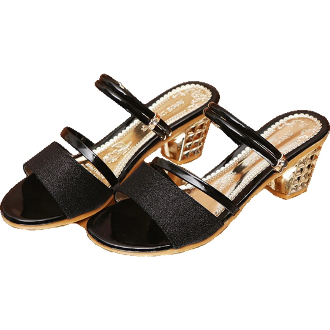 サンダル ミュール 2way バックストラップ ハイヒール チャンキーヒール レディース 女性 靴 くつ シューズ キラキラ おしゃれ かわいい キレ